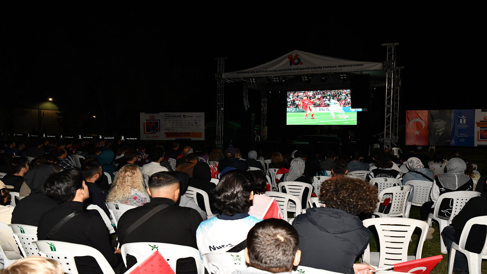 Tepebaşı Belediyesi tarafından kurulan ekranda Eskişehirliler A Milli Futbol Takımının, UEFA 2024 Avrupa Şampiyonası Elemeleri D Grubu maçında Ermenistan ile karşılaştıkları müsabakayı izledi.