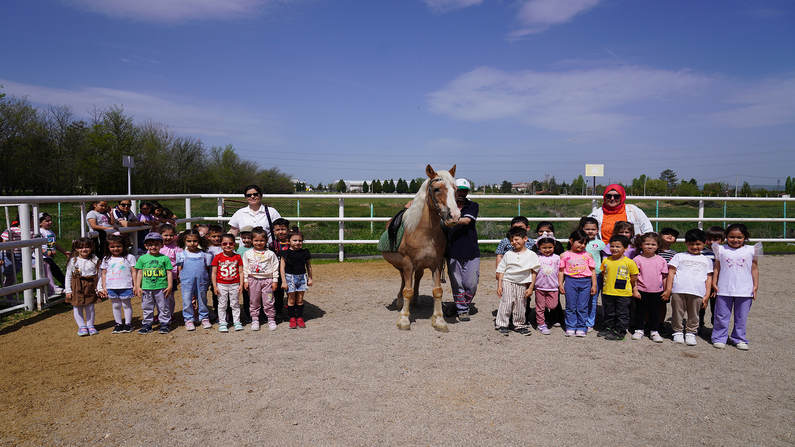 Tepebaşı Belediyesi Doğal Yaşam Merkezi’nde oluşturulan özel alanda, uzman eğitmenler tarafından yönlendirerek ata binmeyi öğrenen çocuklar bu ayrıcalığın keyfini çıkarıyor. Son olarak Cahit Zarifoğlu Ortaokulu bünyesindeki anasınıfında eğitim gören 28 öğrenci, merkezde gözetmenler eşliğinde ata bindi.