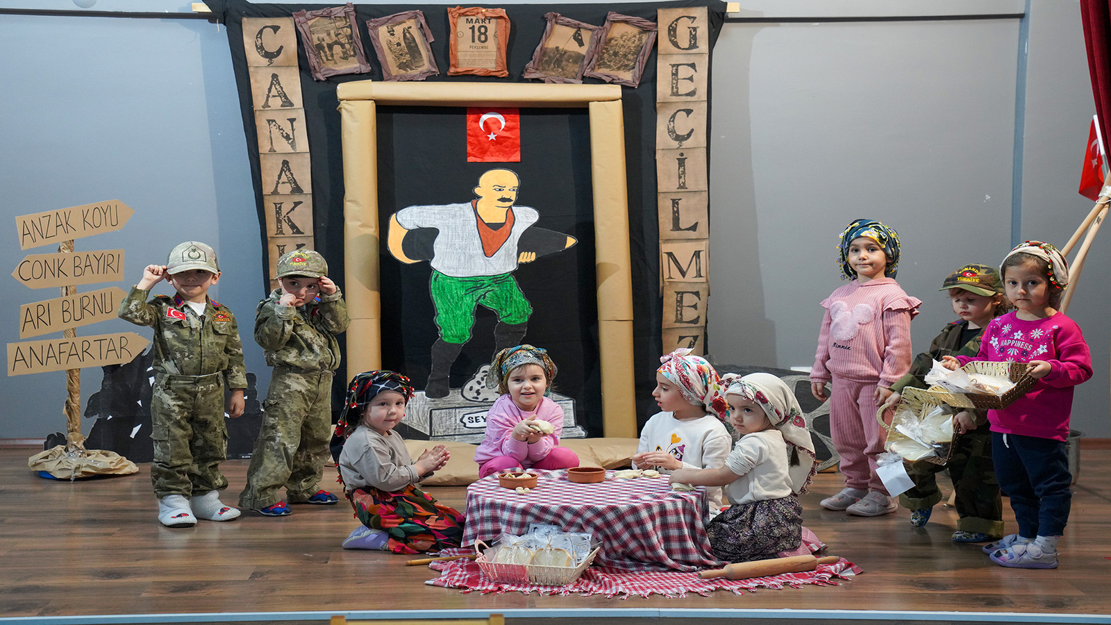Kentin farklı noktalarında hizmete sunulan merkezlerden biri olan Canan-Şükran Şeker Erken Çocukluk Oyun Merkezi’nde 18 Mart Şehitleri Anma Günü ve Çanakkale Zaferi’nin 110’uncu yıl dönümü nedeniyle dramatizasyon etkinliği gerçekleştirildi. Çocuklar etkinlikte temsilen, Çanakkale Savaşı’nda askerlerin menüsünde yer alan üzüm hoşafı ve ekmeği yaparak ülkemiz uğruna canını feda eden şehitleri andı.