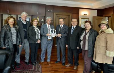 Tepebaşı Belediyesi tarafından gerçekleştirilen Kültür Turlarına katılan muhtarlar adına teşekkür ziyareti gerçekleştiren Türkiye Muhtarlar Derneği Eskişehir Şubesi Başkanı Ali İrfan İbiş ve yönetim kurulu, Başkan Ataç’a çini vazo hediye etti.
