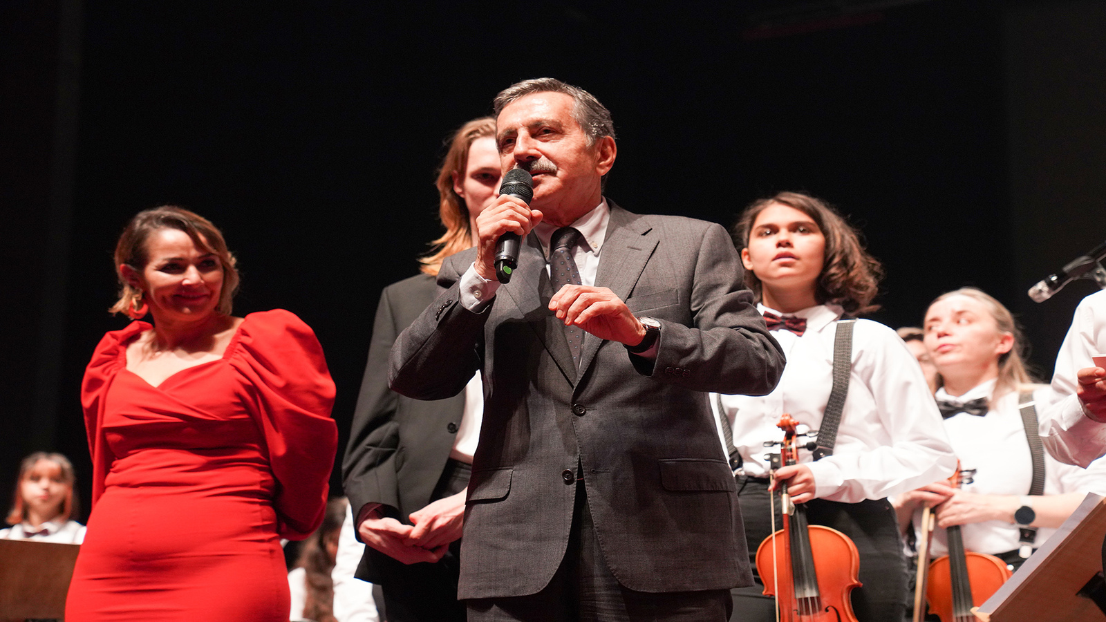 Konser sonrasında konuşan Başkan Ataç, “En çok ne hoşuma gidiyor biliyor musunuz? Hepsi bizim çocuklarımız. 40 keman 40 öğrenci ile başladık. 23 Nisan Çocuk Sanat Merkezinde çalışılıyordu. O zaman en sıkıntılı şey enstrümanların maliyetiydi. O zaman Eskişehir’de ve Türkiye’de ilk kez enstrüman bağışı yapıldı. Bağışlarla bu büyük orkestranın enstrümanları oldu. Çocuklarımız zor zamanda iyi yetiştiler, bugüne kadar geldiler. Her konserde çok farklı noktaya gidiyorlar. Ama onların içinde dayanışma var, müzik sevgisi var, sosyalleşme var, birlikte başarılı olma var. Bunlar olunca koca koca dağları devirip bugüne kadar geldiler. Eskişehir neden farklı? Çünkü bu tip sanat aktiviteleri Eskişehir’i Eskişehir yapıyor. İşte bu sizin eseriniz. Bugünlere kolay gelmedik. Bize güvendiğiniz için sizlere çok teşekkür ediyoruz. Önümüzde 5 yıl daha var. Tabi siz onaylarsanız. Diliyorum hep beraber daha güzel işler yapalım. Türkiye’ye örnek olsun, dünyaya örnek olsun. Çünkü Tepebaşı’nda sıradan bir iş yok. Yapılan işlerden dolayı Tepebaşı dünyada ve Türkiye’de parmakla gösterilen yer oldu. Bu da sizlerin desteklerinizle. Yolumuz açık olsun” dedi.