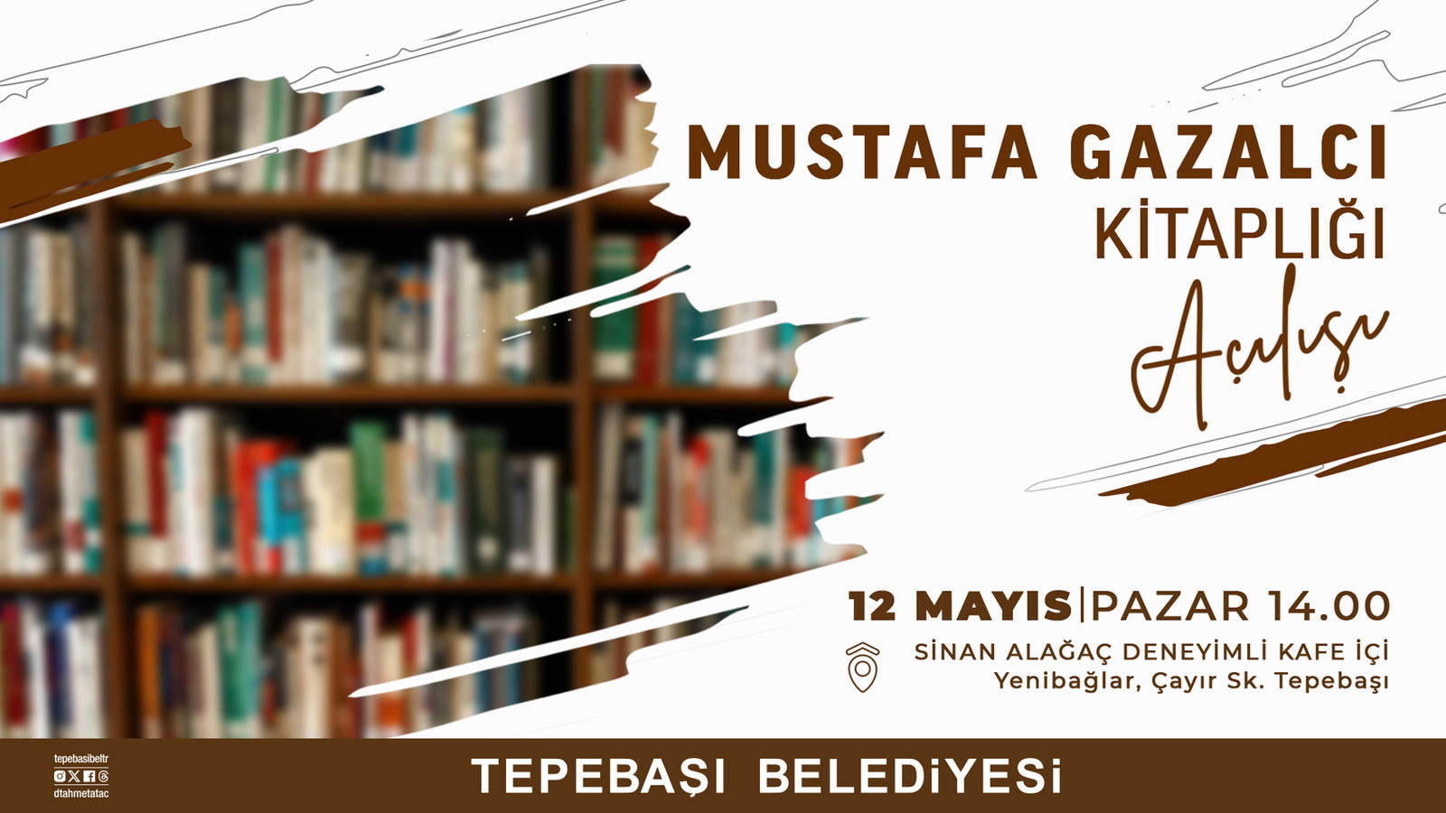 Tepebaşı Belediyesi’nin Sinan Alağaç Deneyimli Kafe’de yazar Mustafa Gazalcı’nın arşivinden bağışladığı kitaplar ile oluşturduğu ve “Mustafa Gazalcı” ismini taşıyacak kitaplık 12 Mayıs Pazar günü açılacak.