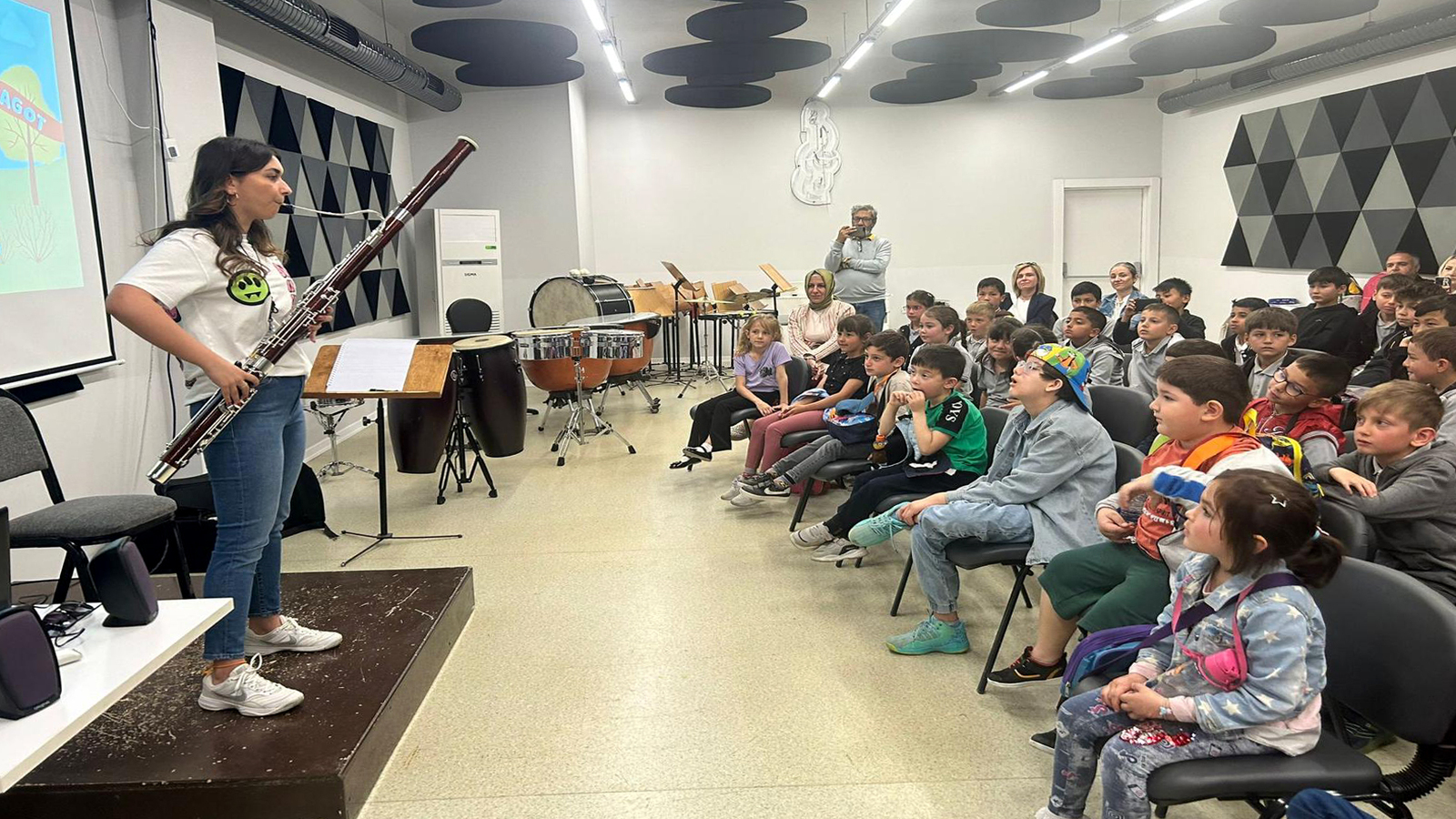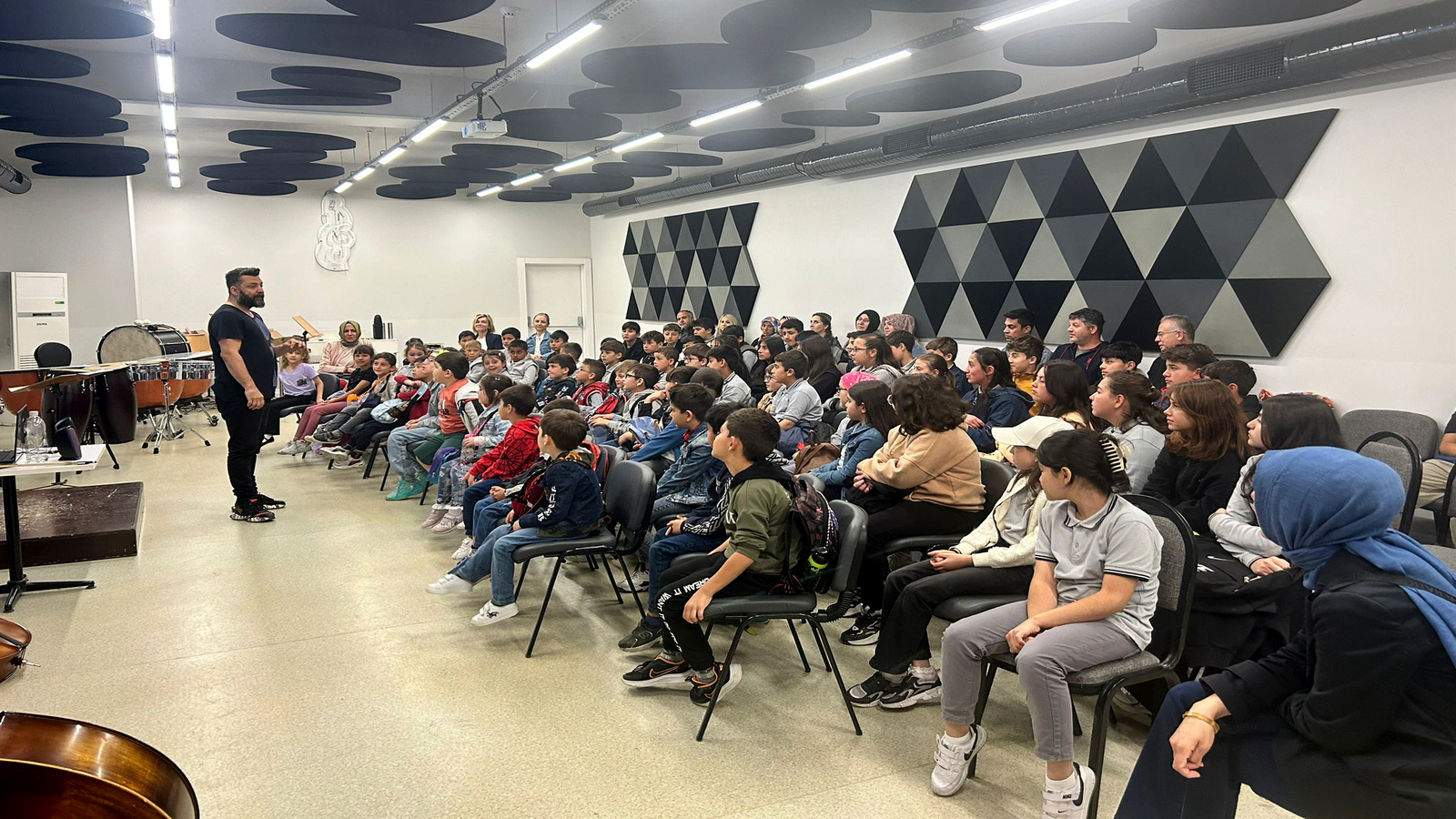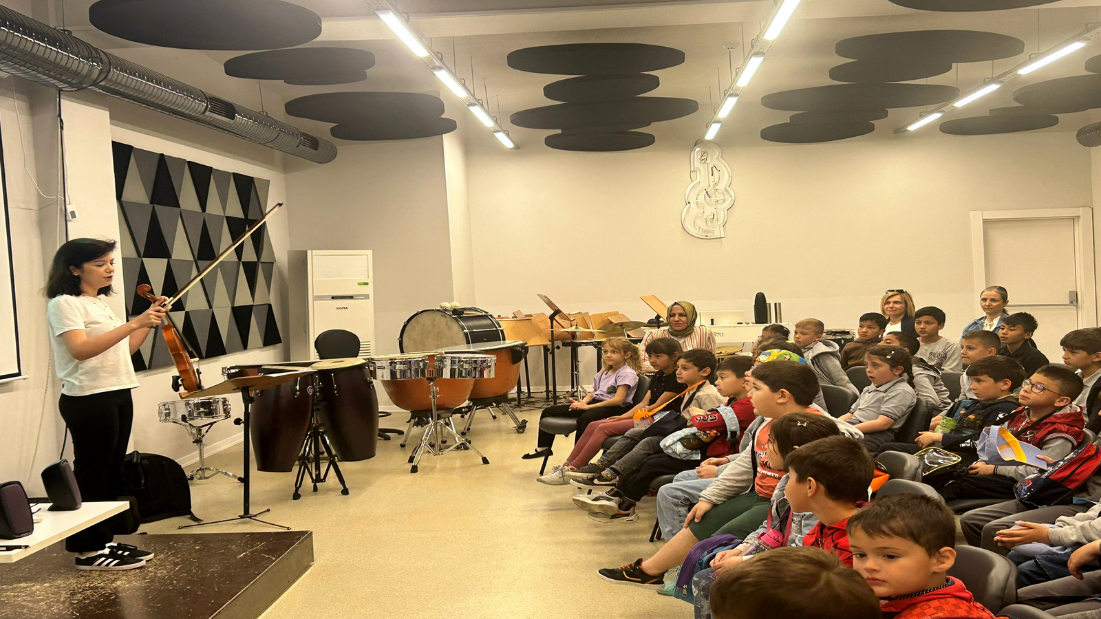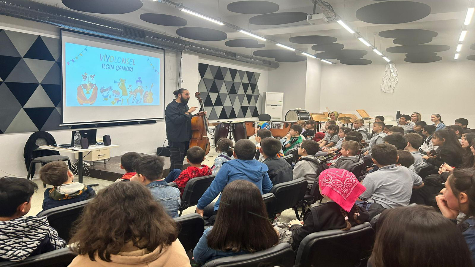 Bu kapsamda anaokulu, ilköğretim ve ortaöğretimde okuyan 90 öğrenci Yeşiltepe Yaşam Merkezi’nde yer alan Tepebaşı Belediyesi Çocuk Senfoni Orkestrası Eğitim ve Çalışma Merkezi’ni ziyaret etti. Ziyarette merkezi gezen öğrenciler, Tepebaşı Belediyesi İki Elin Sesi Var Çocuk Senfoni Orkestrası yetkililerinden enstrümanlar hakkında bilgiler aldı. Müzik aletlerini tanıyan çocuklar, merak ettiği sorulara da cevap alma fırsatı yakaladı. Çalgıları tanırken eğlenceli anlar geçiren çocuklar, bir enstrüman çalmayı öğreneceklerine dair de söz verdi.