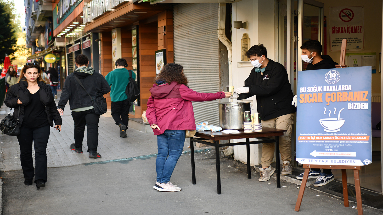 Birçok alanda Tepebaşı Belediyesi Gençlik Merkezlerinden destek ve hizmet alan Anadolu Üniversitesi öğrencileri de ‘Topluma Hizmet Uygulamaları’ dersi kapsamında her gün sırayla 19 Mayıs Gençlik Merkezi önünde çorba servisini gerçekleştiriyor.