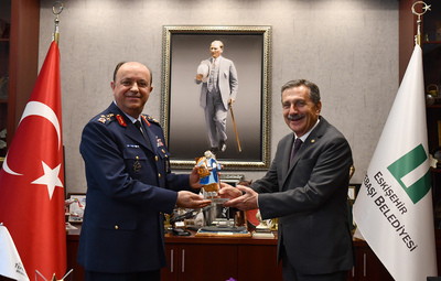 Tepebaşı Belediye Başkanı Dt. Ahmet Ataç, Muharip Hava Kuvveti Komutanı Orgeneral İsmail Güneykaya’yı makamında ağırladı.