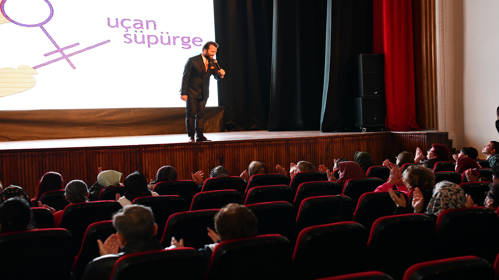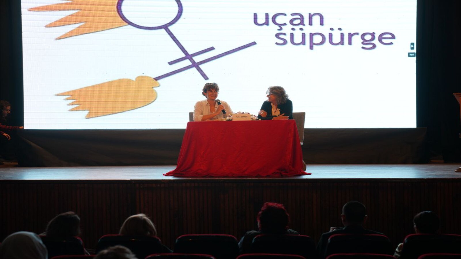 İlgiyle izlenen filmlerin ardından moderatörlüğünü Uçan Süpürge Vakfı Başkanı Halime Güner’in yaptığı “Oyun” ve “Kraliçe Lear”in yapımcı ve yönetmeni Pelin Esmer ile söyleşi gerçekleştirildi. Esmer, “Bu davet için teşekkür ederim. Uçan Süpürge daha da uçsun diliyorum. 25 sene uçtuysa daha da uçacaktır eminim. Ben nasıl yaptım? Aslında bir şekilde düşünmeden, bilinçsizce ve tutkuyla yapılabilecek bir şey yaptığımız. Burada yönetmen, sinemacı, yapımcı arkadaşlarımız da var. Yaptıklarımız akıllı, uslu insanların yapabileceği şeyler değil. Ama işte bir şekilde inatla, severek, isteyerek, acı çekerek, gülerek, ağlayarak benim de herhalde 20 sene falan oldu. Umarım sizin festivaliniz kadar daha uzun ömürlü devam ederim” dedi.