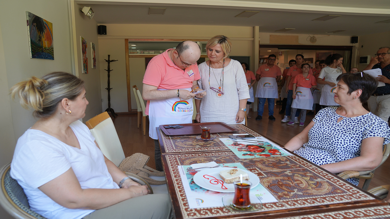 Özel bireylerin toplumla bütünleşmesinin amaçlandığı Gökkuşağı Kafeler zihinsel yetersizliği bulunan bireyleri toplumla bütünleştirirken bireylerin de özgüven kazanmasını sağlıyor. Zihinsel engelli bireylerin servis yaptığı bir alan olarak 2 farklı merkezde hizmet veren Gökkuşağı Kafeler ile bireylerin gelişiminin takip edilebileceği akademik çalışmalara zemin hazırlanıyor.