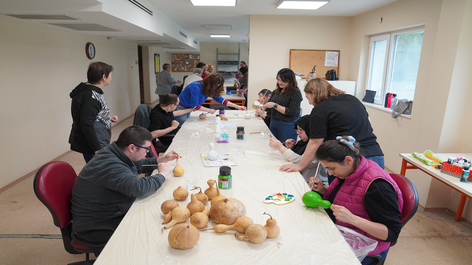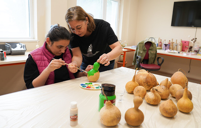 Tepebaşı Belediyesi bünyesindeki Engelliler Montaj Atölyelerinde eğitim alan özel bireylere yönelik su kabağı süsleme atölyesi düzenlendi. Özel bireyler, su kabaklarını istedikleri renge boyayarak eğlenceli vakit geçirdi.