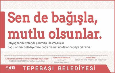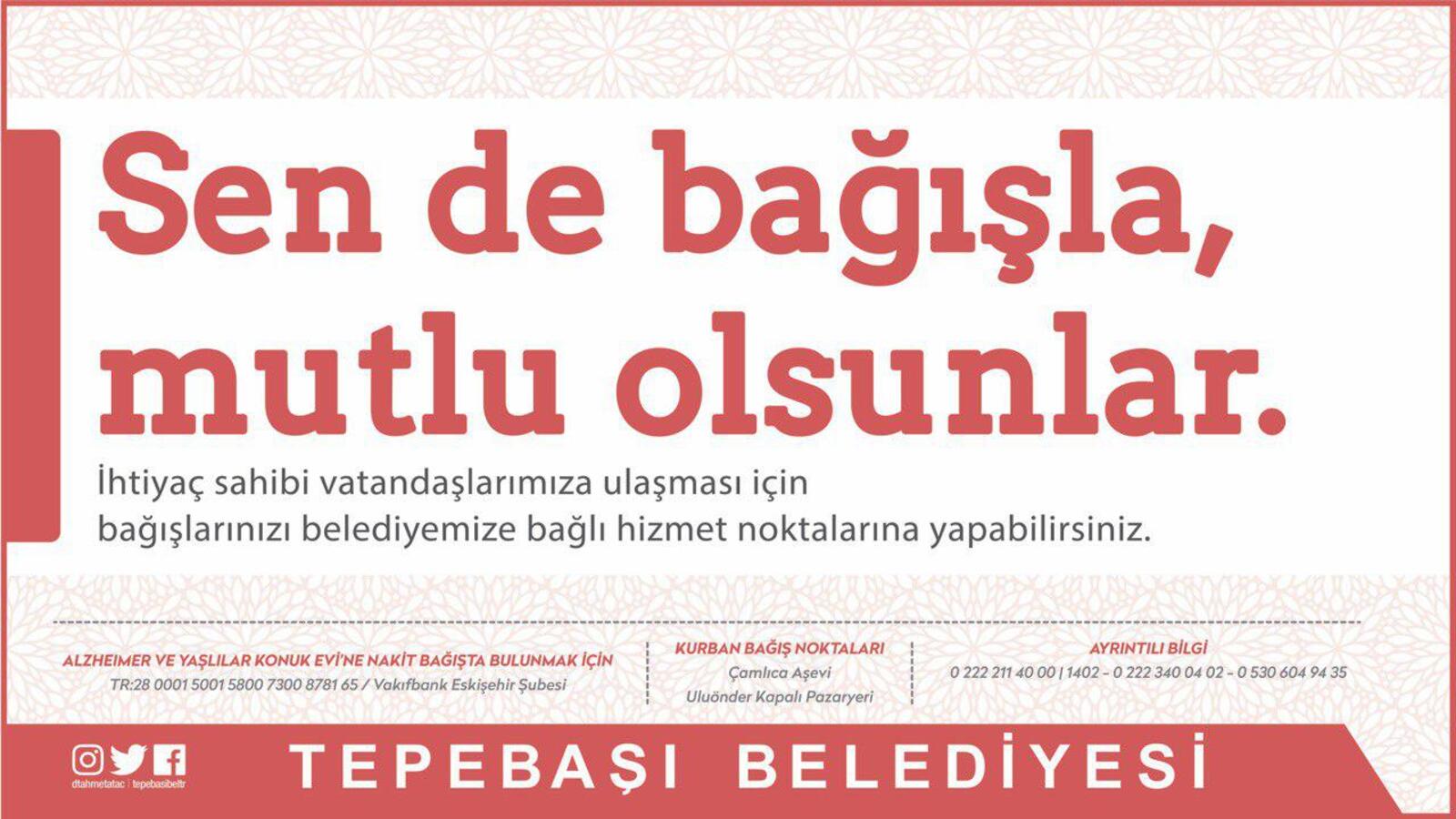 Tepebaşı Belediyesi her yıl olduğu gibi bu Kurban Bayramı’nda da duyarlı vatandaşların bağışlarını, ihtiyaç sahiplerine ulaştıracak.