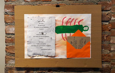 Kolaylaştırıcılığını Gül Çandır Saç’ın yaptığı sergide şiirler, Tepebaşı Belediyesi Geri Dönüşüm Atölyesi’nde üretilen kağıtlar üzerine yazıldı.
