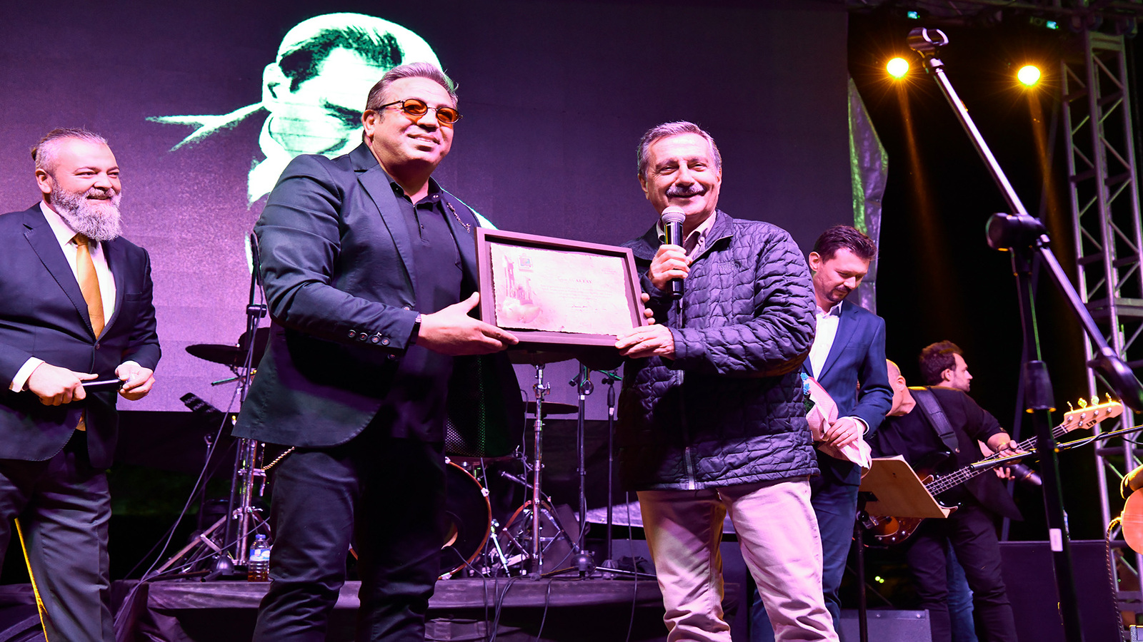 Konserde Altay’a geri dönüştürülmüş kağıttan yapılan teşekkür belgesini sunan Başkan Ataç, “Ali Altay gerçekten çok özel bir kardeşimiz. Kendisi Atatürk’ü ve cumhuriyeti çok seven bir kardeşimiz. Orkestradaki arkadaşlarımızın da hepsi çok değerli. Ali hep Eskişehir’e gelmek ister. Bizler de şimdi onun güzel müziklerini dinleyelim ve eğlenelim” dedi.