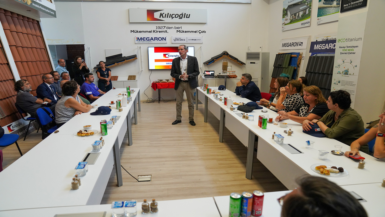 Pazarlamadan Sorumlu Genel Müdür Yardımcısı Ali Osman Özaydemir Kılıçoğlu markasının tarihçesi ve günümüzdeki faaliyetleri hakkında detaylı bilgiler verirken Fabrika Müdürü Hulusi Kıyık, fabrikanın teknolojisi ve ürünlerin teknik özellikleri ile ilgili sanatçılara kısa bir sunum gerçekleştirdi.