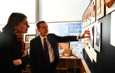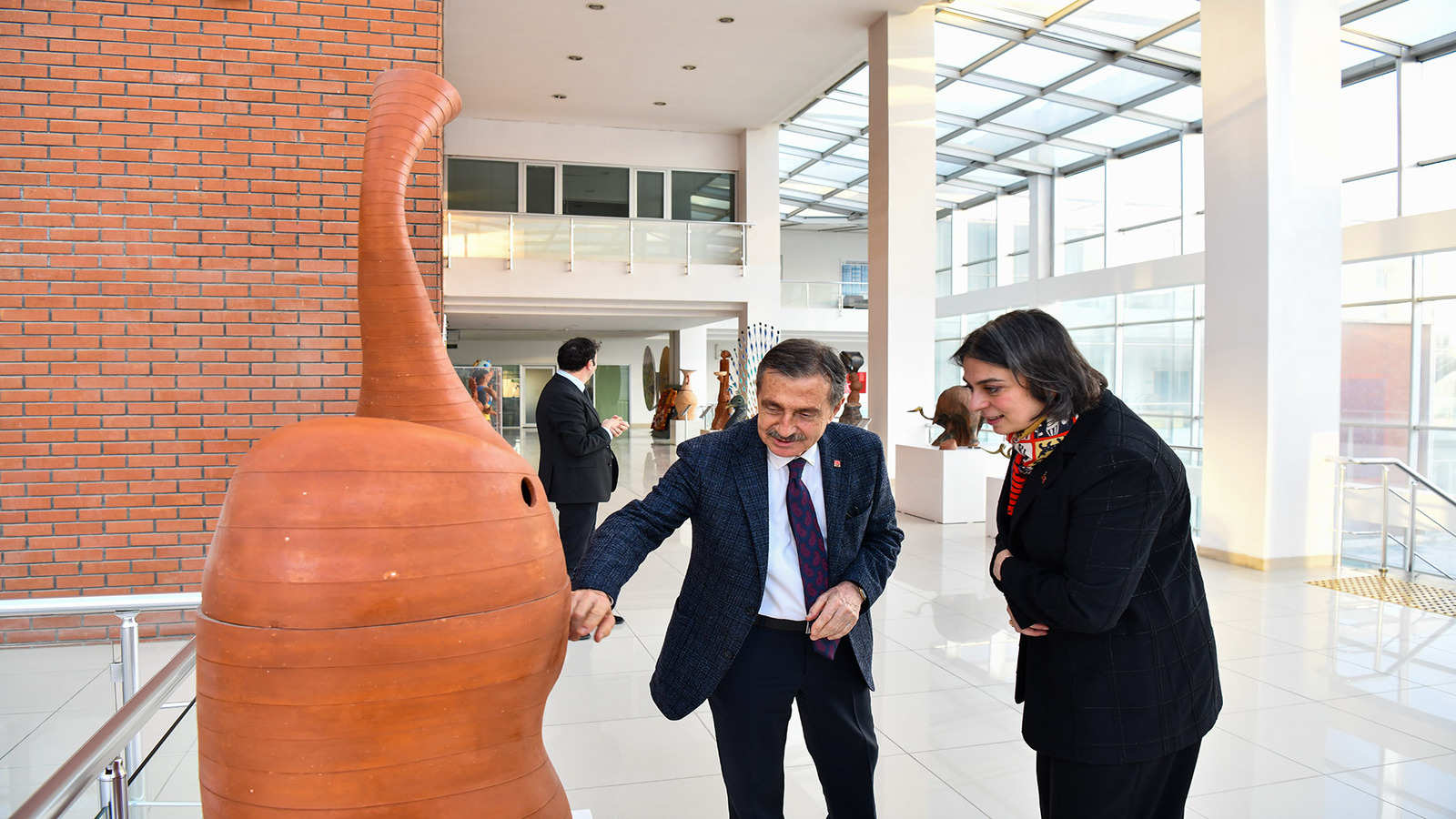 Başkan Ataç son olarak Eskişehirli olan İstanbul Üsküdar Belediye Başkanı Sinem Dedetaş’ı makamında ağırladı. Başkan Ataç ve Dedetaş, ülke gündemine ve Eskişehir’e dair sohbet etti. Daha sonra Başkan Ataç, Dedetaş’a Tepebaşı Belediyesi hizmet binasında yer alan Uluslararası Eskişehir Pişmiş Toprak Sempozyumu eserlerini ve Kağıt Geri Dönüşüm Atölyesi’ni gezdirerek, bilgi verdi.