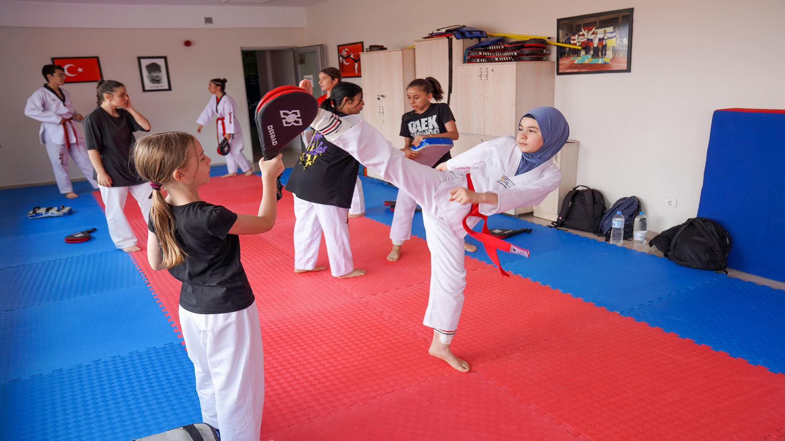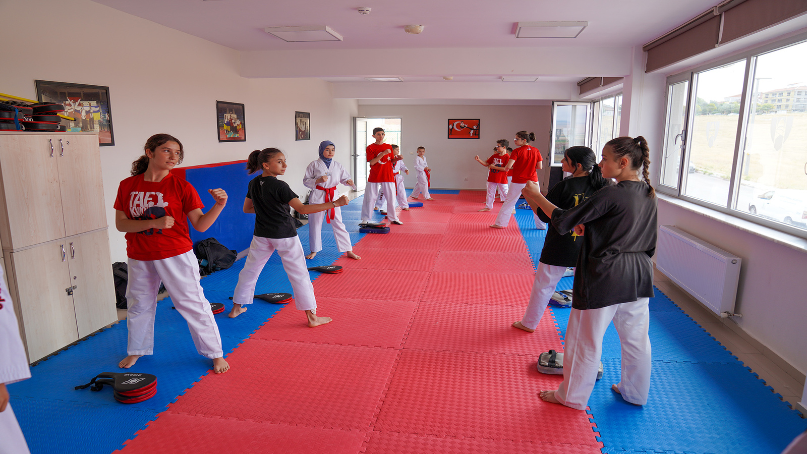 Merkezde düzenlenen tekvando kursu da çocukların ilgisi ile sürüyor. Gruplar halinde devam eden eğitimler kapsamında, 7-18 yaş arası 95 çocuk antrenmanlara katılıyor. Eğitimlere katılan çocuklar, eğitmenler gözetiminde sağlık ile spor yaparken kendilerini savunmayı da öğrenmiş oluyor.