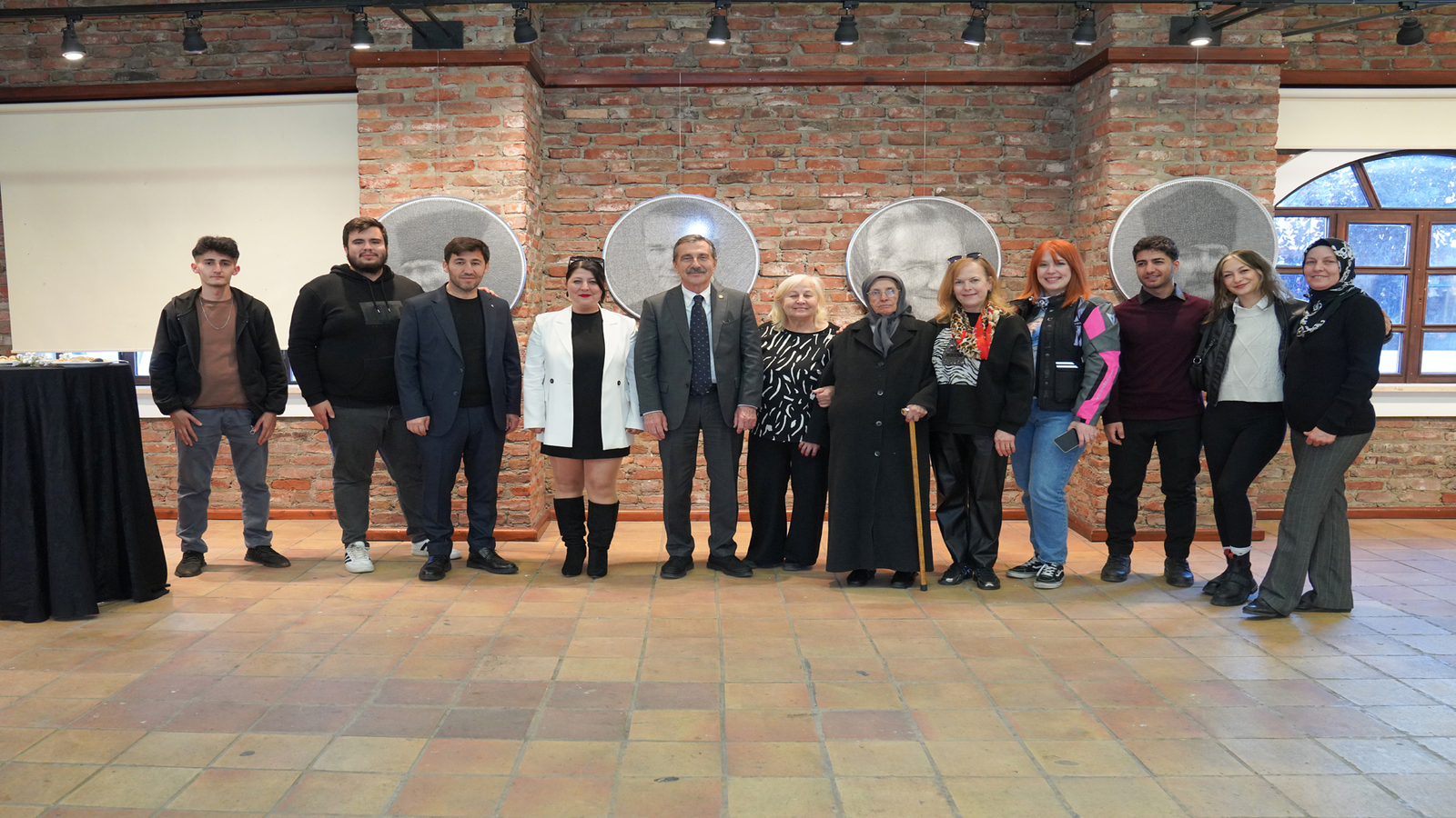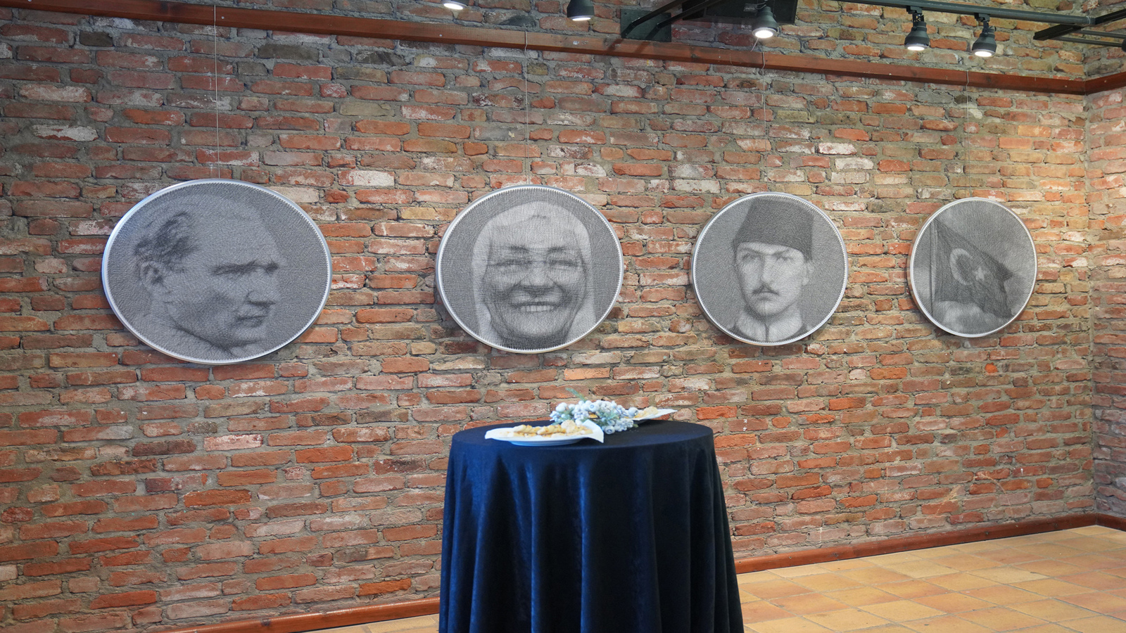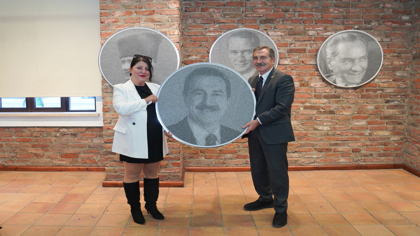 Edanur Yavaş yaptığı konuşmada, “Ulu Önder Mustafa Kemal Atatürk’ün izinde, onun ilke ve devrimlerinden aldığımız ilhamla; her bir ip, her bir düğüm ve her bir ilmek, aslında Cumhuriyetimizin emeğini, sabrını ve ışığını temsil ediyor. Proje ortağım Dilara Altıparmak ile sizlere hazırlamış olduğumuz bu 17 eser için büyük emekler harcadık. Bir çalışmamızda çeşitli ön hazırlık ve algoritmalarını oluşturduktan sonra 240 tane çivi ve 7 bin 200 metre saç telinden daha ince iplerle 4 bin 500 atım yaparak, altyapısında hiçbir çizim olmadan ilmek ilmek dokuyarak portrelerimizi oluşturduk. Bugün burada sergilenen her eser, sadece bir sanat ürünü değil aynı zamanda Cumhuriyet ile yoğrulmuş bir emeğin simgesidir.” diye konuştu.