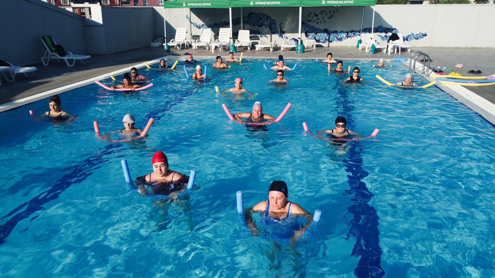 Tepebaşı Belediyesi tarafından düzenlenen su jimnastiği kursuna vatandaşlar yoğun ilgi gösterirken, kursa katılanlar su jimnastiği ile yaşamlarına daha sağlıklı devam ediyor.