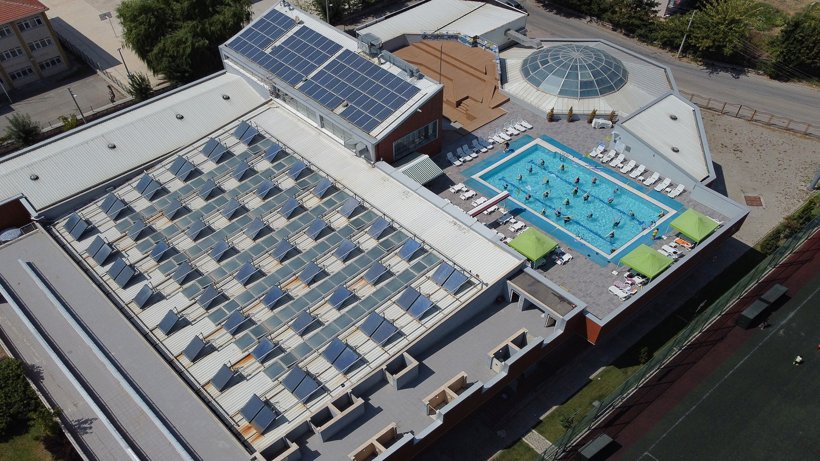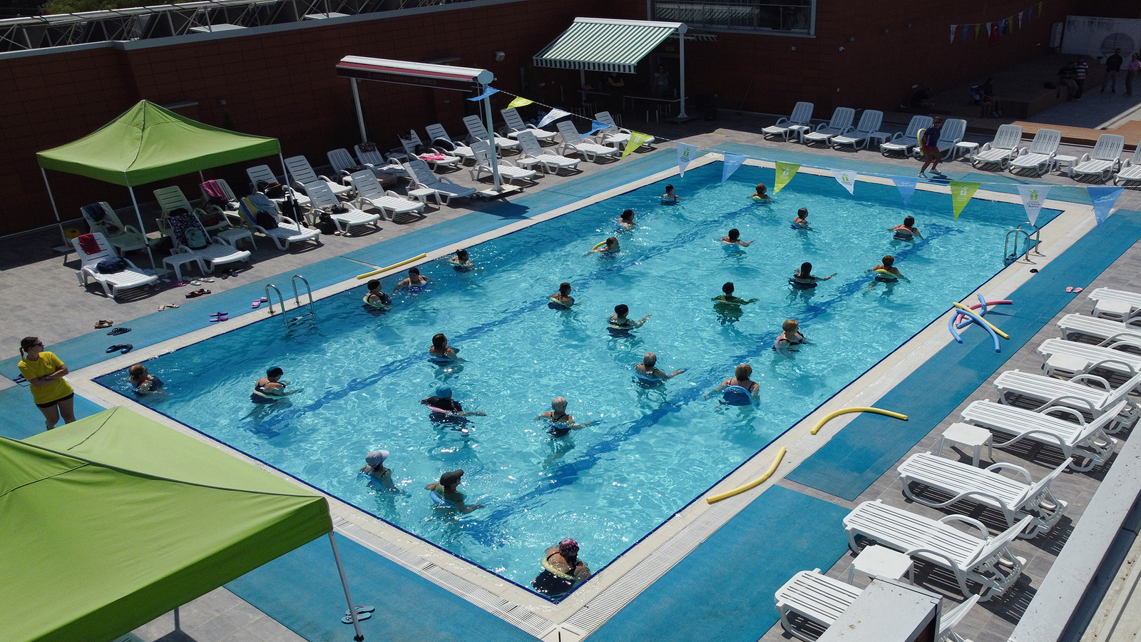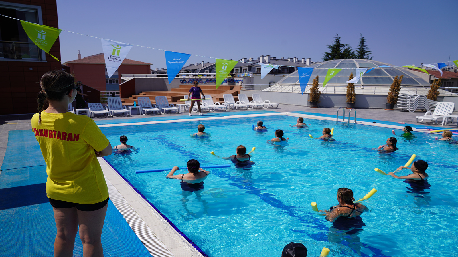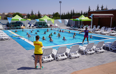 Tepebaşı Belediyesi'nin uluslararası Leed Sertifikalı yeşil bina özelliğine sahip Tepebaşı Belediyesi Mustafa Kemal Atatürk Spor Tesisleri ve Su Sporları Merkezi’nde haftada 2 gün düzenlenen, 18 yaş üstü 60 kursiyerin katıldığı su jimnastiği kursunun kapanışı gerçekleşti. Kursiyerler, merkezde bulunan açık havuzda düzenlenen kapanışta hünerlerini sergiledi. Uzman eğitmenler tarafından vatandaşlara sağlıklı spor yaptırmak amacıyla düzenlenen kursa katılan kursiyerler, emeği geçenlere teşekkürlerini iletiyor.