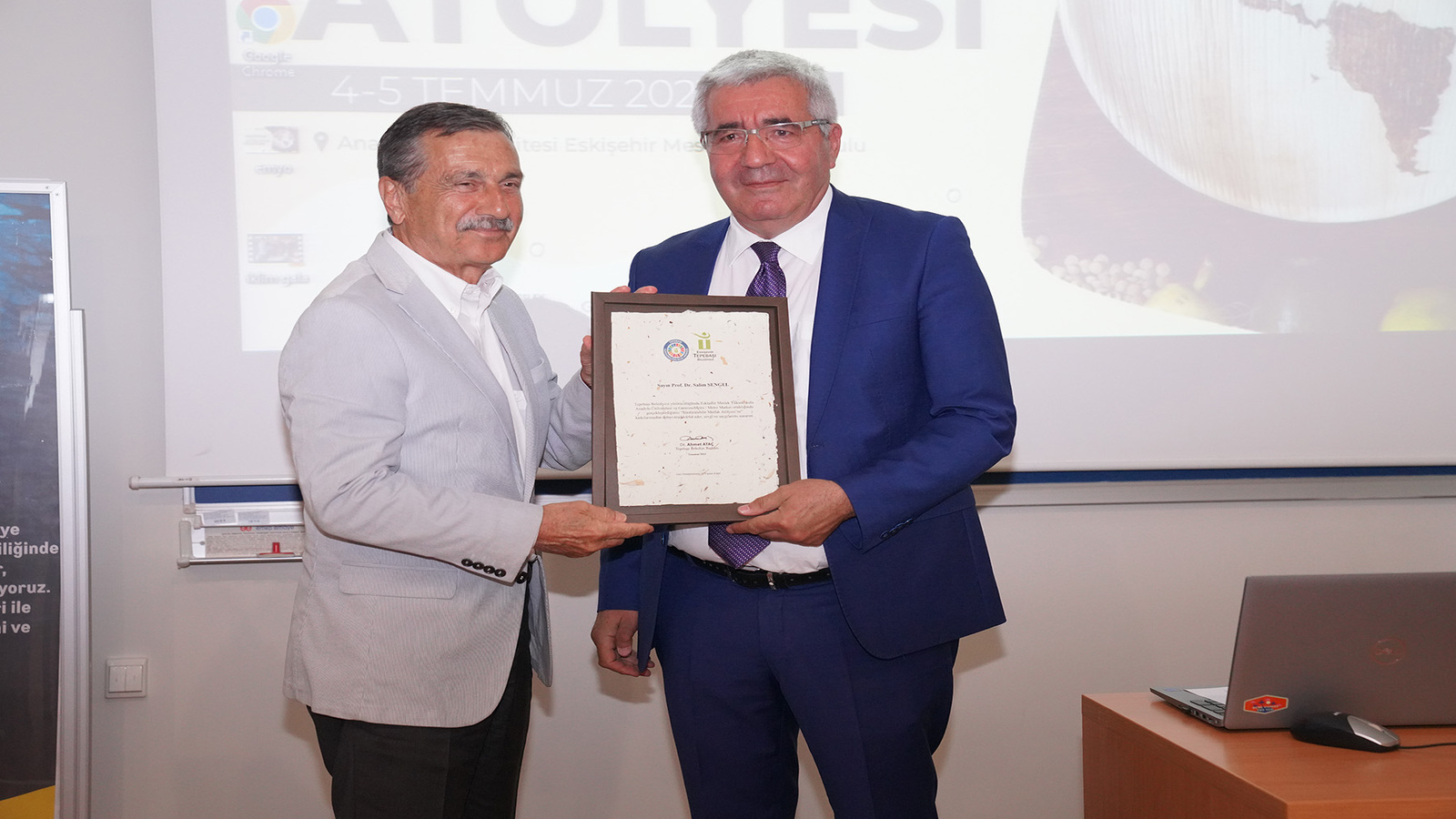 Konuşmaların ardından Başkan Ataç, Metro Türkiye FSD Ege Bölge Müdürü Yiğit Pazarlı’ya ve Anadolu Üniversitesi Eskişehir Meslek Yüksekokulu Müdürü Prof. Dr. Salim Şengel’e katılım belgelerini takdim etti.