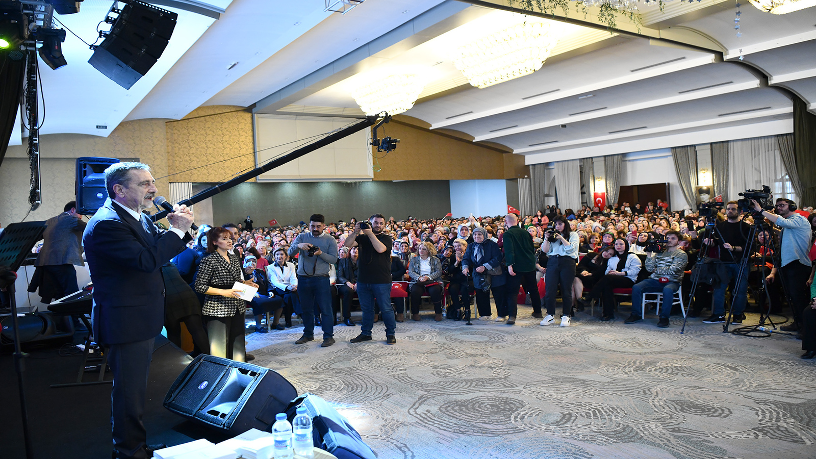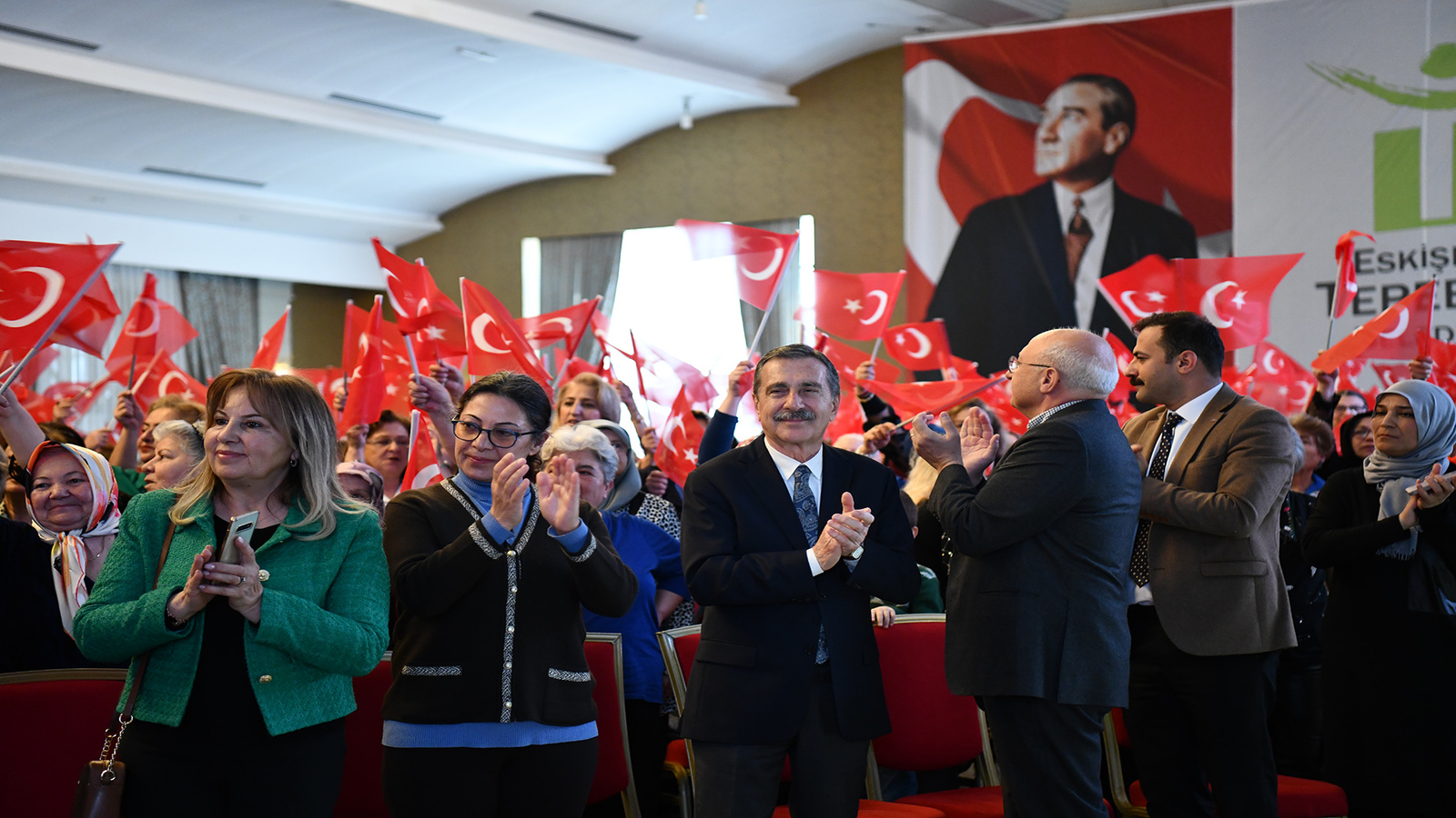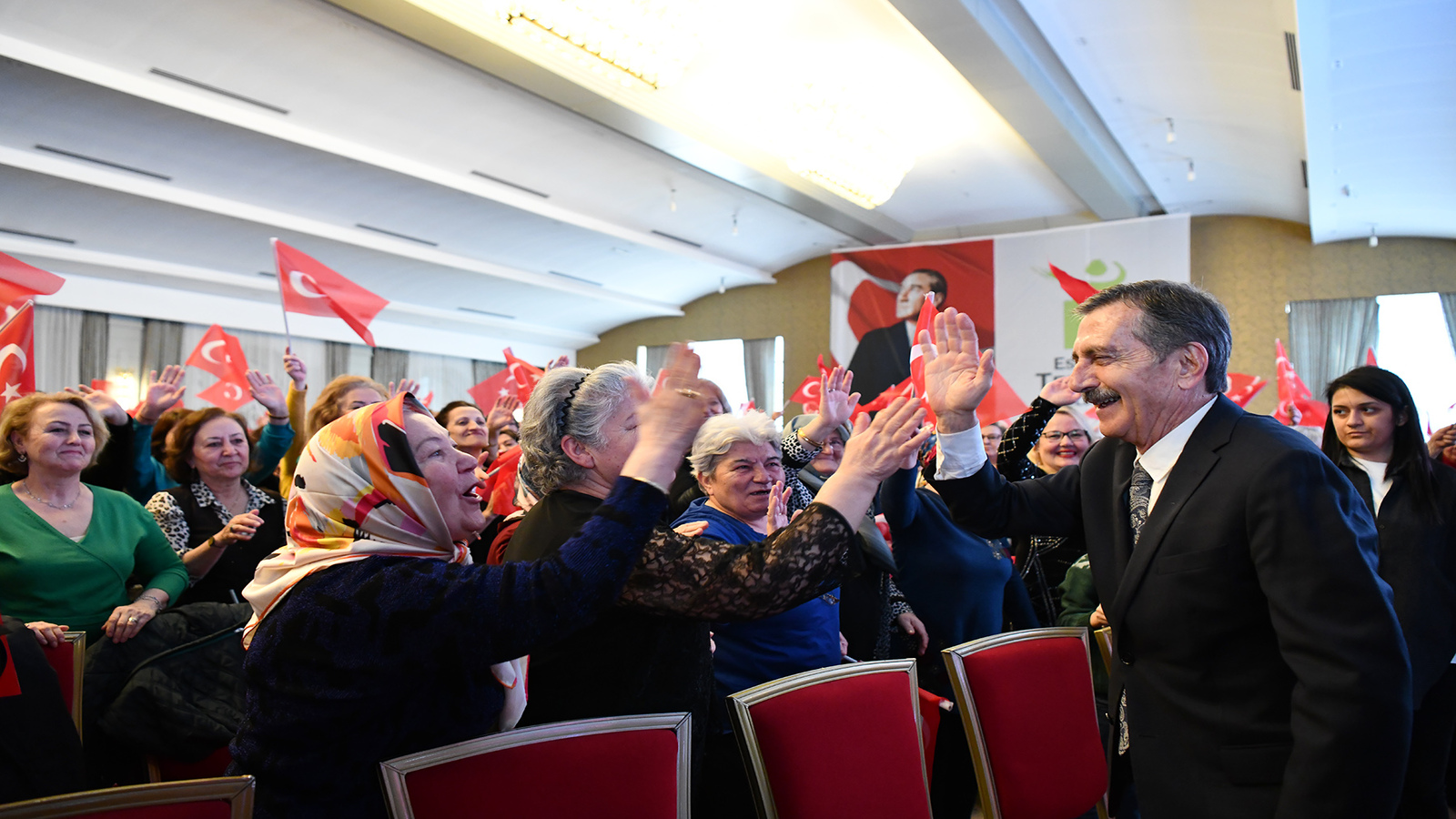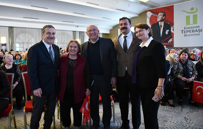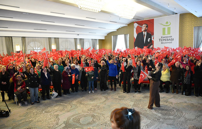 Buluşmada kadınlara seslenen Tepebaşı Belediye Başkanı Dt. Ahmet Ataç, “Öncelikle gününüz hayırlı olsun ama ben size 1 gün değil 365 gün vaat ediyorum. Düşündük sizleri nasıl mutlu edebiliriz? Hangi sanatçıyla mutlu edebiliriz? En sonunda Gülden Karaböcek’i uygun gördük. Kendisini yaklaşık 1967’den beri takip ederim. Gerçekten bir hanımefendi, bir sanatçı, bir usta. Onun şarkılarıyla bugün çok güzel bir gün geçireceğiz. Sizlerle her zaman günlerimiz güzel geçiyor. Bundan sonra da yine günlerimiz iyi olacak. Atatürk ‘Kadınlar yerde sürünmeye değil, omuzlar üzerinde göklere yükselmeye layıksın’ diyor. Esasında Cumhuriyet bir kadın devrimidir. Mesela 1934’te kadınlara seçme seçilme yasasını çıkarıyor. Bugün dünyanın en medeni, en zengin kenti olan İsviçre 1970’te çıkarıyor. Bakın Atatürk'ün vizyonu nasıl vizyon. Atatürk'e laf söyleyenler Allah aşkına ellerini vicdanlarına koysunlar öyle laf söylesinler. Gerçeği görmezden gelenler inanın çarpılır. Değerli kadınlarımız burada öyle güzel bir manzara var ki inanın vallahi doyamıyorum. Yolumuz açık olsun” dedi.