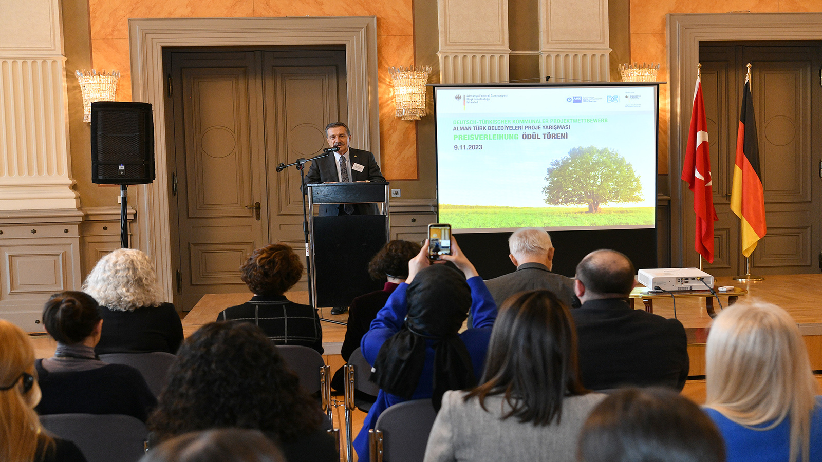 İstanbul Almanya Başkonsolosluğunda düzenlenen ödül törenine Tepebaşı Belediye Başkanı Dt. Ahmet Ataç’ın yanı sıra, Almanya İstanbul Başkonsolosu Johannes Regenbrecht, Alman-Türk Sanayi ve Ticaret Odası Genel Sekreteri Dr. Thilo Pahl, Almanya Dışişleri Bakanlığı Yurtdışı Kültür Politikaları Sorumlusu Anna Bartels ve jüri üyeleri katıldı.