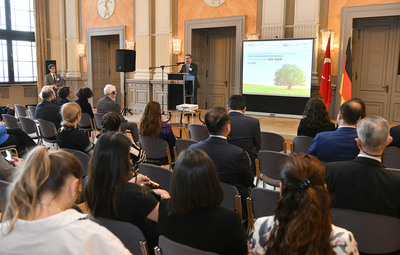 Sunumların ardından ise proje yarışmasında birinci olarak toplam bütçesi 56 bin Avro olan ödüllü yarışmanı birincisi olan Tepebaşı Belediyesi ve Almanya’dan kardeş şehir olan Treptow-Köpenick Belediyesi’ne ödülleri takdim edildi. Başkan Ataç ödülünü, Alman-Türk Sanayi ve Ticaret Odası Genel Sekreteri Dr. Thilo Pahl’anın elinden aldı.