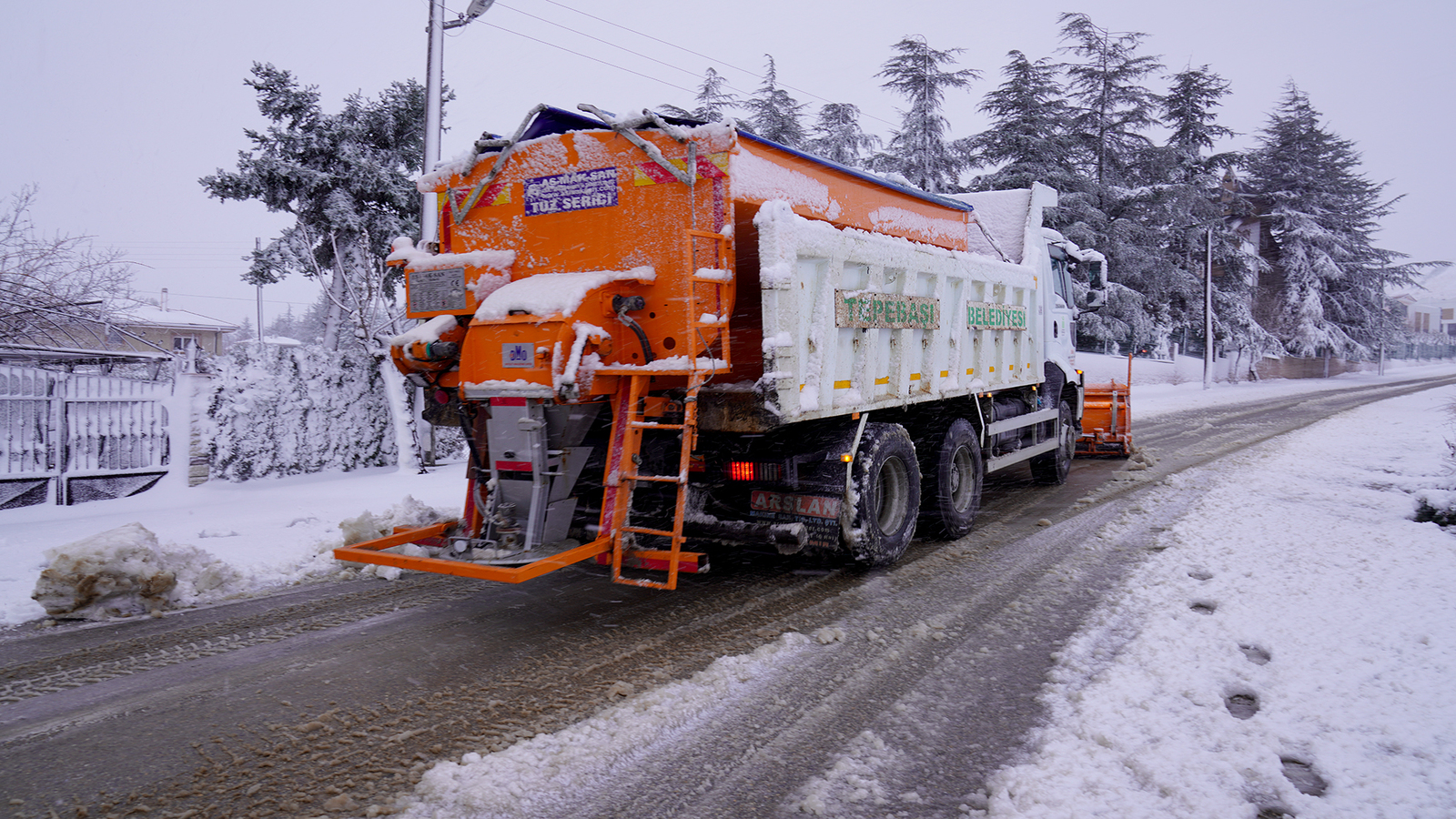 Tepebaşı Belediyesi, kentte etkisini gösteren kar yağışına tuzlama ve küreme çalışmaları ile hızlı bir şekilde müdahale etti.