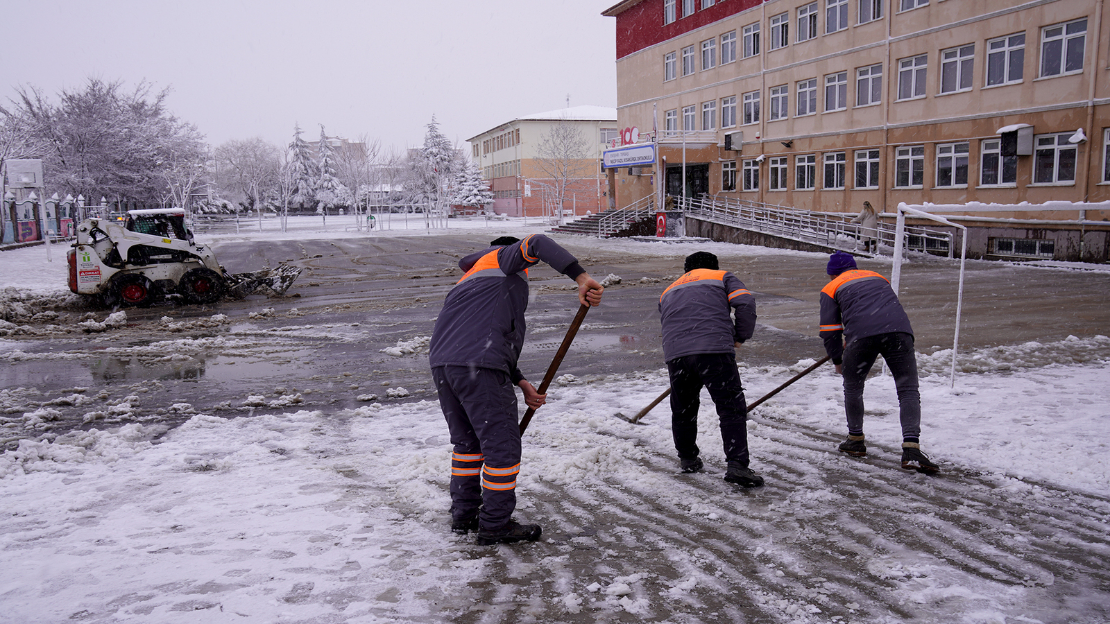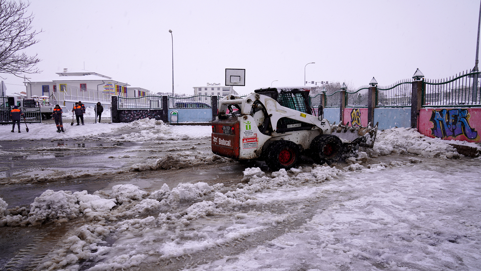 3 vardiya halinde 7/24 mesai yapan ekipler, küreme ve tuzlama yapmaya aralıksız biçimde devam ediyor. Ekipler özellikle yollarda ve kaldırımlarda oluşabilecek buzlanma nedeniyle, vatandaşların herhangi bir olumsuzluk yaşamaması için küreme çalışması gerçekleştiriyor. Öte yandan yollarda da tuzlama çalışmaları sürdürülüyor. Tepebaşı Belediyesi yetkilileri çalışmaların aralıksız olarak süreceğini ifade etti.