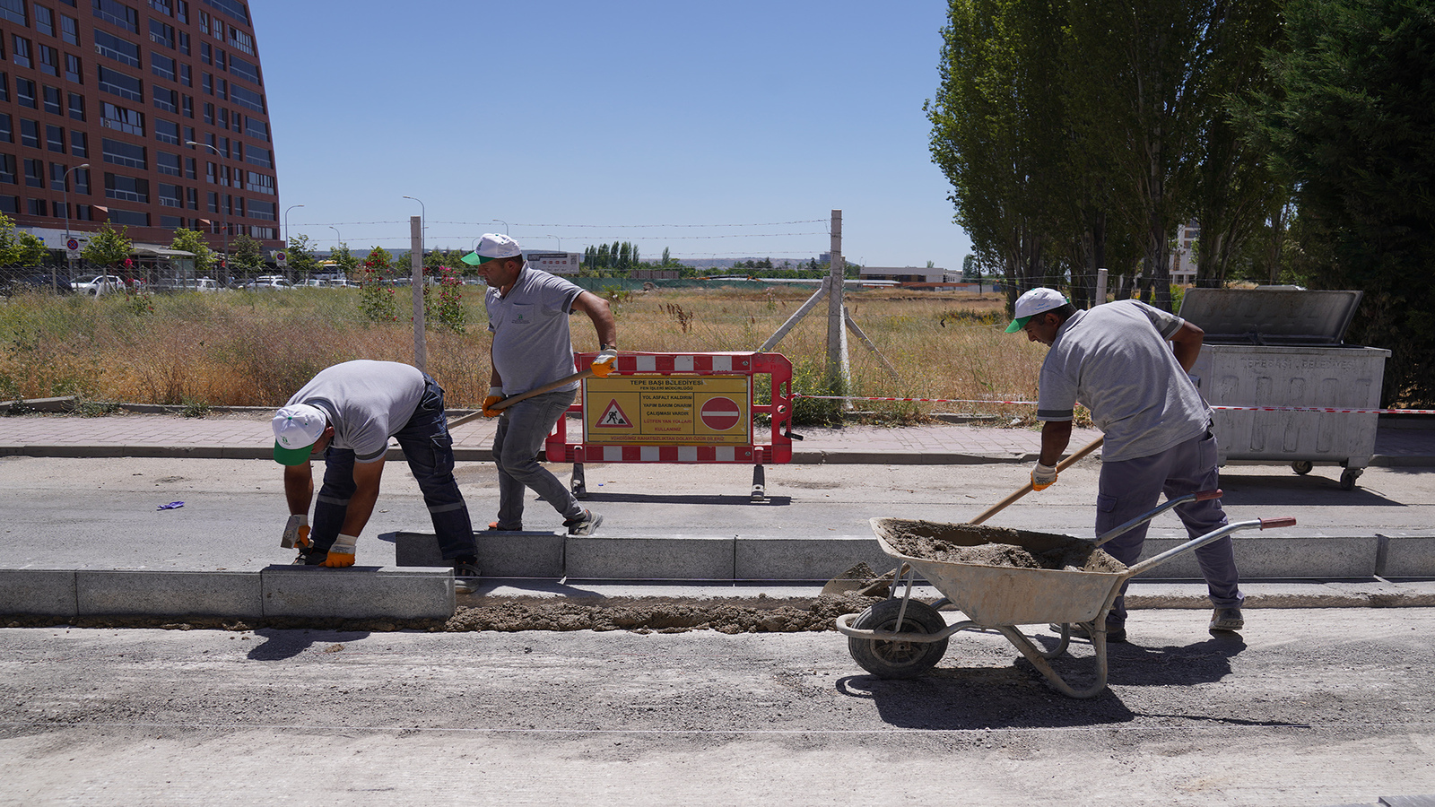 Tepebaşı Belediyesi Fen İşleri Müdürlüğü, kent genelinde gerçekleştirdiği üstyapı çalışmalarını aralıksız şekilde sürdürüyor. Bu kapsamda ekipler, Hoşnudiye Mahallesi’nde orta refüj bordür çalışmalarını gerçekleştiriyor.