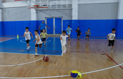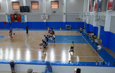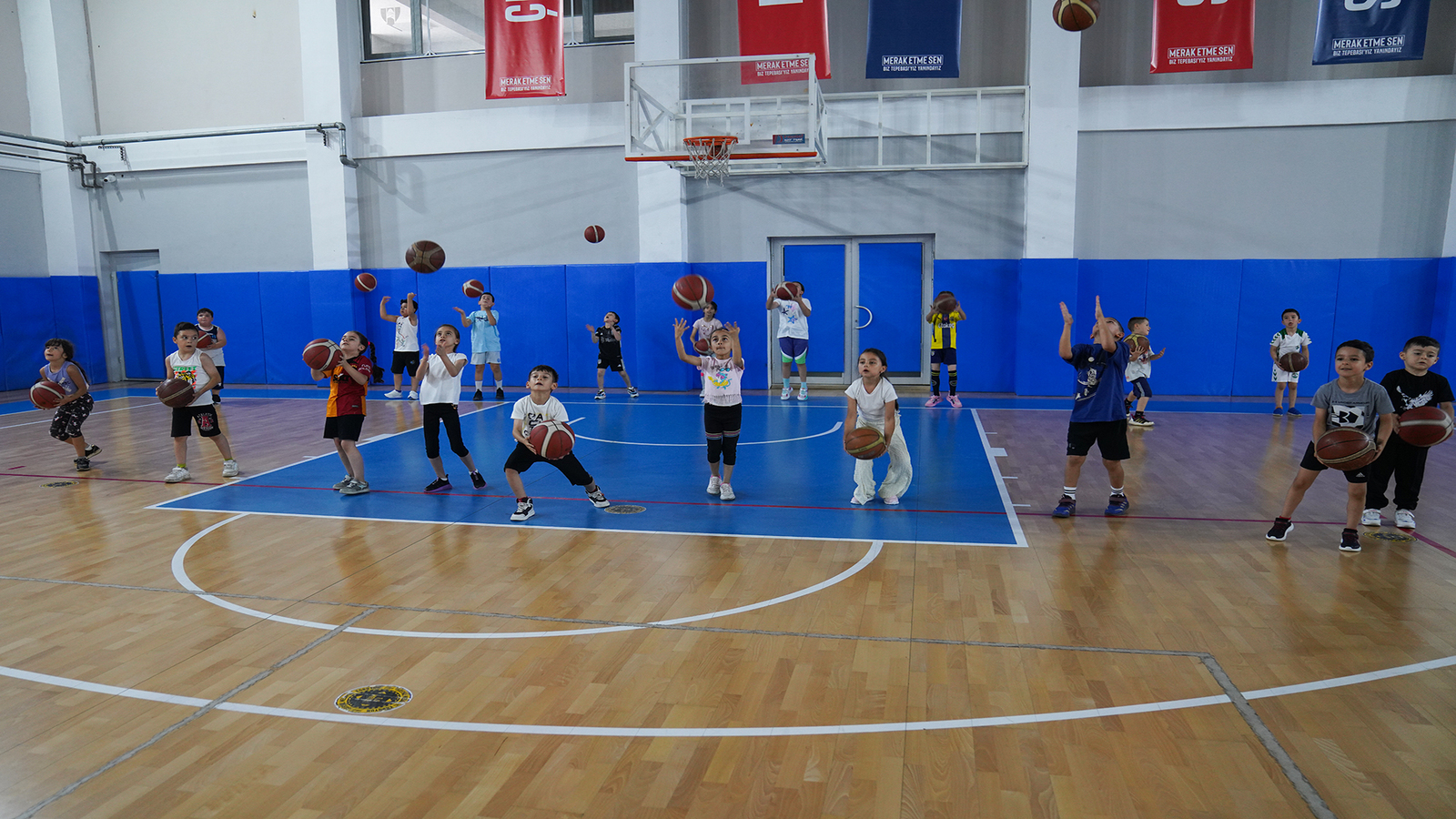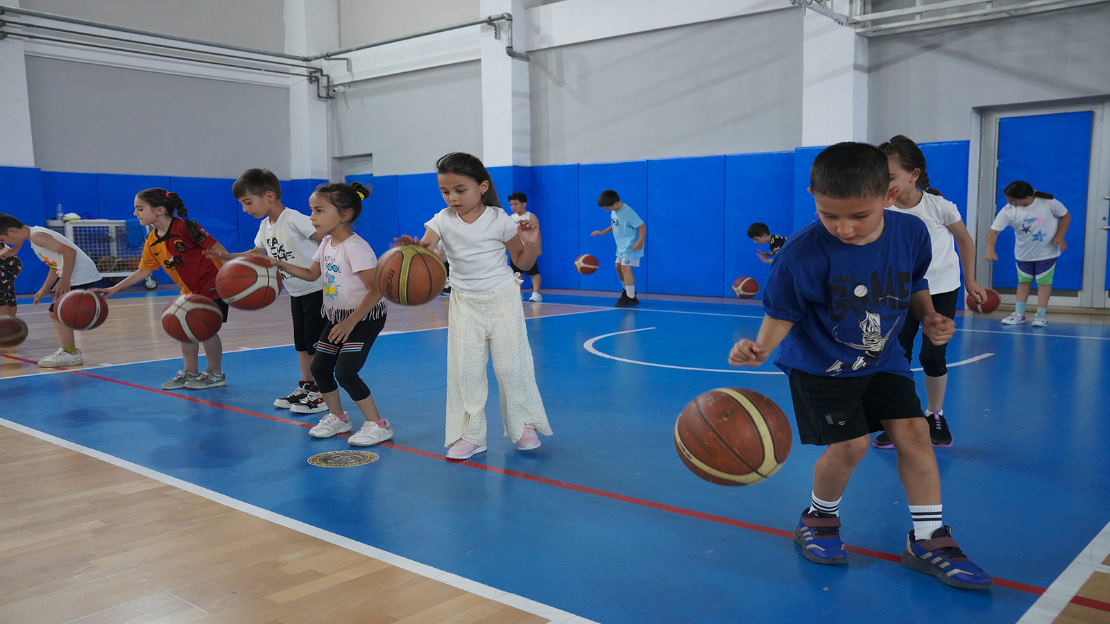 Haftada 5 gün gerçekleştirilen basketbol kursuna katılan 7-16 yaş arası 135 çocuk, uzman eğitmenler tarafından temel basketbol eğitimi kapsamında basketbol kuralları, top tutma, top sürme, pas atma, turnike ve şut çalışmaları gibi eğitimler veriliyor.