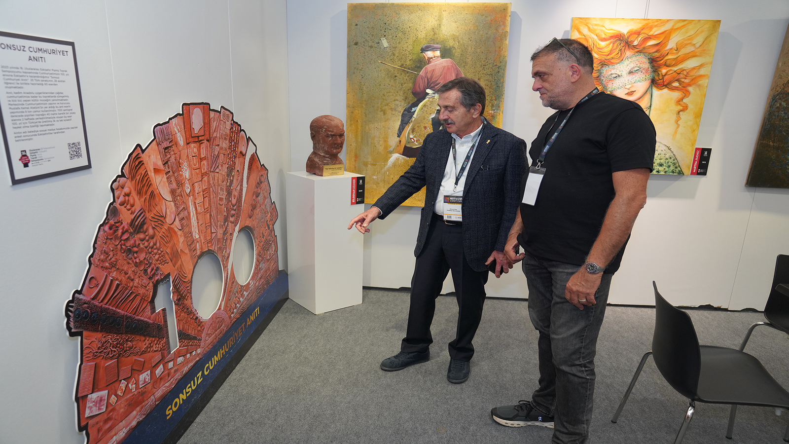 ATO Congresium'da düzenlenen açılış törenine katılan Tepebaşı Belediye Başkanı Dt. Ahmet Ataç: “Bugün Ankara’da sanatın kalbinin attığı bir fuar alanındayız. Sanat halka dönük olmadığı zaman değeri olmuyor. Bizim Eskişehir’de Tepebaşı Belediyesi olarak her yıl düzenli olarak yatığımız 3 sanat etkinliğimiz var. Bunlardan bir tanesi Uluslararası Eskişehir Pişmiş Toprak Sempozyumu. Pişmiş toprak bizim tuğla-kiremit sektörünün şamotundan kaynaklanıyor. 1926’da ilk kiremit Tepebaşı’nda yapılmış. 2001 yılında bir heykel sempozyumu yapmak istedik. Kullanılacak malzeme mermer mi olsun, metal mi olsun, ahşap mı olsun derken birimizin aklına bu tuğla-kiremit şamotu geldi. Çünkü içerisinde sektör var, sanat var, bilimsellik var. Bu üçayaklı bir proje oldu. Bu sene 17’ncisini yaptık. Elimizde 244 eser var. Tepebaşı adeta açık hava müzesi gibi. Son 3 yıldır da kolektif eser ortaya çıkarıyoruz. İlkini pandemide yaptık. O dönem hayatını kaybeden doktor arkadaşlarımızın, eczacı arkadaşlarımızın ve sağlık çalışanlarımızın isimlerini kaynaklardan aldık. Yaklaşık 520 isim. Onları tuğlaların üzerine sırladık. Pişmiş Toprak Sempozyumumuza katılan sanatçılarımıza da yapacağımız projeyi anlattık. Eskişehir’in simgesi bacadır. Ve baca şeklinde yapacağımız anıt için seramik parçası istedik. 450 parça geldi. O tuğlalarla seramik parçalarının kolajını yaptık ve çok güzel bir eser ortaya çıktı. Daha sonra Cumhuriyet’in 100. yılına ithafen yapalım dedik. Yaklaşık 25 sanatçı 28 de asistan öğrencilerimizle beraber güneş gibi belirli şeritlerle tamamlanan bir eser ortaya çıktı. Tüm sanatçılar Cumhuriyet ile ilgili düşüncelerini yansıtan parçaları yaptı. İsmini de vatandaşlarımız belirledi. İsmi “Sonsuz Cumhuriyet Anıtı” oldu. Ben bundan dolayı çok gurur duyuyorum. Bu yıl ise Frig medeniyetine ait Yazılıkaya’nın yorumunu yaptık. Sanatçılar Frig medeniyeti adına ne hissettiklerini parçalarına yansıttı. Üç tane çok önemli kolektif eseri Eskişehir’e kazandırdık. Bundan da gurur duyuyoruz. Ayrıca Sanat Çalıştayımız var. Çalıştayımıza her sene ressamları davet ediyoruz. Sanat Çalıştayımızı da 13 kez yaptık. Belediyenin koleksiyonunda 450 tane tablo var. Bir de Uluslararası Şiir Buluşmamız var. Bu doğrultuda sanatı ve sanatçıyı desteklemeye, kentimizin bu alandaki başarılı yerini, daha da üst seviyelere çıkarmak için çalışmaya devam edeceğiz.” ifadelerini kullandı.
