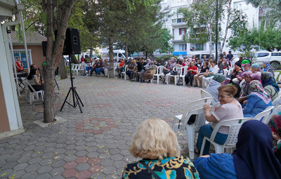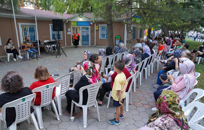 Yaz Tepebaşı’nda Güzel etkinlikleri de Deneyimli Kafelerde kent merkezi ve kırsal mahalle sakinlerini bir araya getirmeyi sürdürüyor. Yenibağlar Mahallesi Ali Rıza Efendi Deneyimli Kafe’de yoğun katılımla gerçekleşen buluşmada Berkay ve Melda Cengiz tarafından canlı müzik dinletisi gerçekleştirildi. Ayrıca mahalle sakinlerine çeşitli ikramlar yapılırken, çocuklara yüz boyama etkinliği düzenlendi.