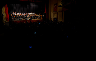 Ücretsiz olarak düzenlenen konser sonunda davetliler, Karausta ve korosunu ayakta alkışladı.