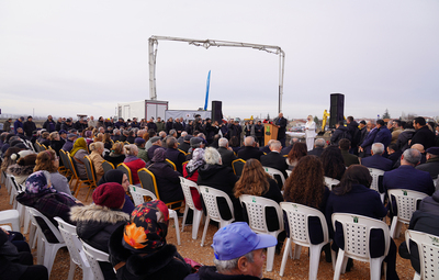 Konuşmaların ardından dualar okundu ve kurdele kesilerek temel atma gerçekleştirildi.