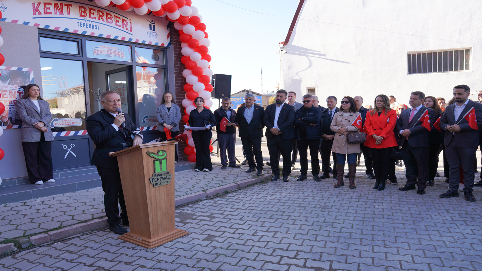 Törenin açılış konuşmalarını gerçekleştiren Tepebaşı Belediye Başkanı Dt. Ahmet Ataç: " Bundan tam 24 yıl önce, 11 Kasım 2001 tarihinde Fevzi Çakmak Mahallemizde ilk Aşevimizi ve İlk Belde Evimizi hizmete açmıştık. O gün nasıl büyük bir heyecan ve gurur yaşadıysak, bugün de aynı duygularla buradayız. Yine Fevzi Çakmak Mahallemizde, yine insana dokunan bir projeyle karşınızdayız. Bugün Türkiye’nin ilk Kent Berberi’ni hizmete açmanın mutluluğunu yaşıyoruz. Tepebaşı Belediyesi olarak biz, her zaman insanı merkeze alan, insana dokunan projelerde öncü olduk. Yaklaşık on yıl önce köylerden başlayarak, bugün sayısı binleri bulan yaşlılarımıza ve engelli vatandaşlarımıza ücretsiz saç kesim hizmeti ulaştırdık. Şimdi bu güzel hizmeti daha kapsamlı bir hale getiriyor ve Kent Berberi adıyla kalıcı bir merkez oluşturuyoruz. Yeni yerimizde, şehit ailelerimize ücretsiz olarak hizmet vereceğiz. Ayrıca emeklilerimize ve engelli vatandaşlarımıza yönelik ücretsiz saç kesim hizmetlerimiz de aynı şekilde devam edecek. Yılbaşına kadar tüm hizmetlerimiz ücretsiz olacak; yılbaşından sonra ise tamamen sembolik bir ücret olarak 100 TL belirledik. Bu proje, dayanışmayı, paylaşmayı ve insana değer vermeyi esas alan belediyecilik anlayışımızın bir yansımasıdır. İlk Kent Berberi’ni bu mahalleye açarken de Berberler ve Kuaförler Odası ile görüş alışverişinde bulunduk. Onların önerileri doğrultusunda Fevzi Çakmak Mahallemizde açtık. Kent Berberi’nin, Fevzi Çakmak Mahallemize ve tüm Eskişehirimize hayırlı olmasını diliyorum. Bu güzel projenin hayata geçmesinde emeği geçen tüm çalışma arkadaşlarıma, kuaförlerimize, berberlerimize ve gönüllülerimize yürekten teşekkür ediyorum. Hep birlikte, daha güzel, daha insancıl bir Tepebaşı için çalışmaya devam edeceğiz. Bugün, 29 Ekim Cumhuriyet Bayramı’nda Cumhuriyetimizin 102. yılını kutladığımız bu anlamlı günde Türkiye’nin ilk Kent Berberi’ni hizmete açmanın gururunu da yaşıyoruz. Bu proje, Cumhuriyetimizin ruhunu, halkçılığını, eşitlik anlayışını ve dayanışma duygusunu birebir yansıtan bir hizmettir. Büyük lider Mustafa Kemal Atatürk’ün ve Cumhuriyetimizin aydınlık yolunda, emeğe ve halka hizmet etmeye kararlılıkla devam edeceğiz. Cumhuriyetimizin 102. Yılı, 29 Ekim Cumhuriyet Bayramımız kutlu olsun.” ifadelerini kullandı.
