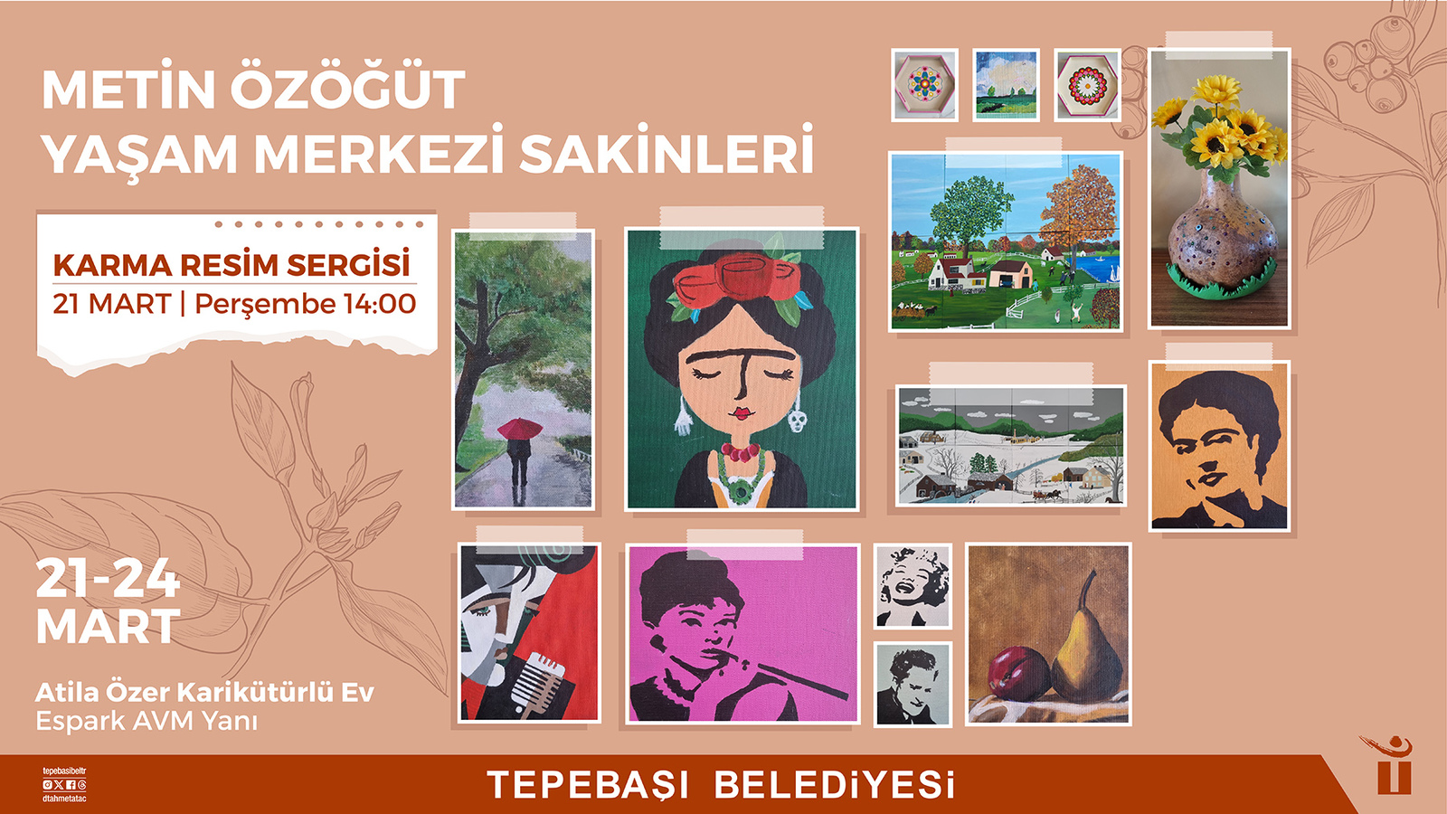 Metin Özöğüt Yaşam Merkezi kursiyerlerinin eserlerinden oluşan sergi, 21 Mart Perşembe günü saat 14.00’te Atila Özer Karikatürlü Ev’de açılacak. Sergi 21-22-23 ve 24 Mart tarihlerinde gezilebilecek.