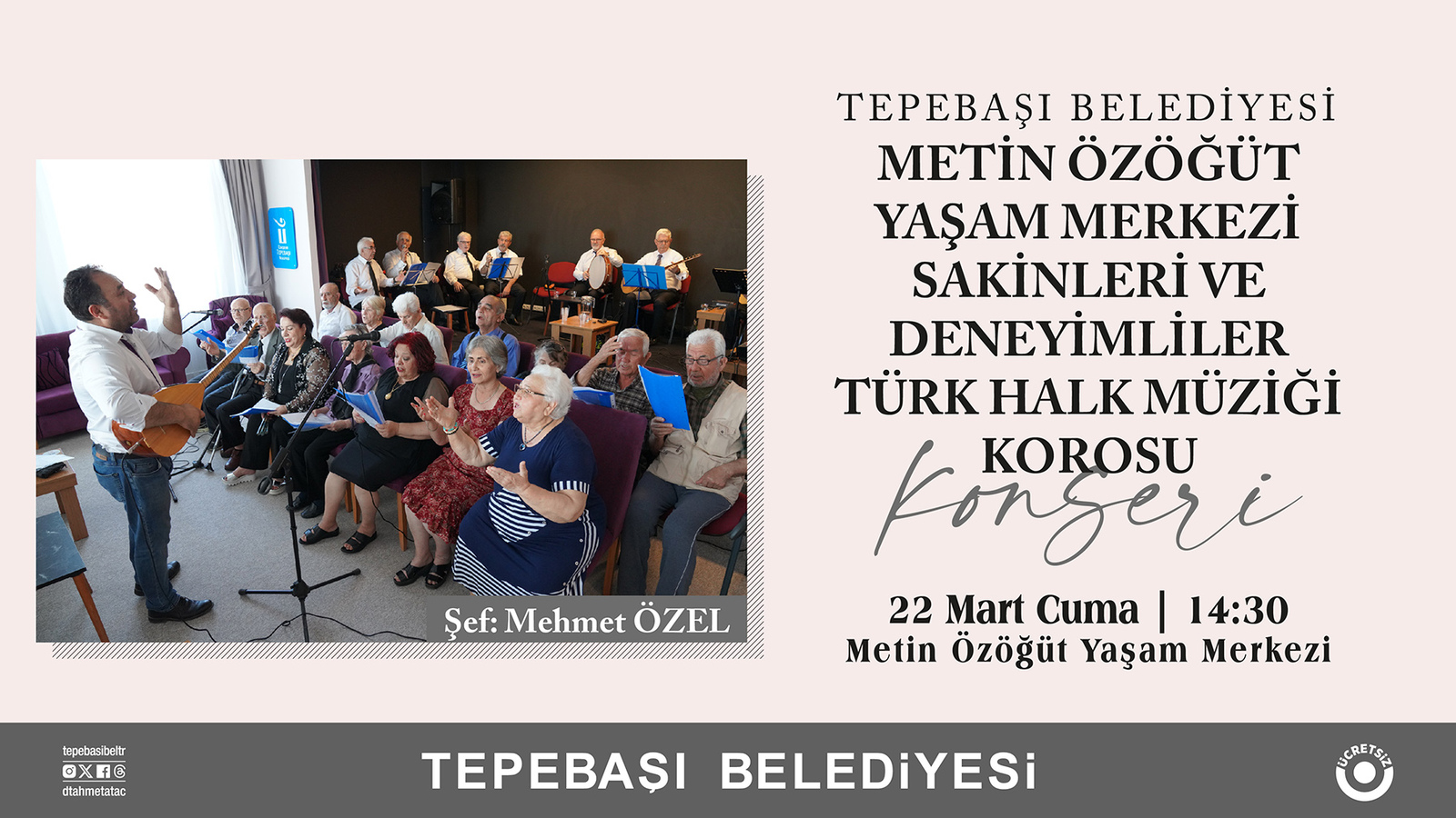 Ayrıca deneyimli vatandaşlardan oluşan koronun vereceği konser ise Metin Özöğüt Yaşam Merkezi’nde 22 Mart Cuma günü saat 14.30’da gerçekleştirilecek.