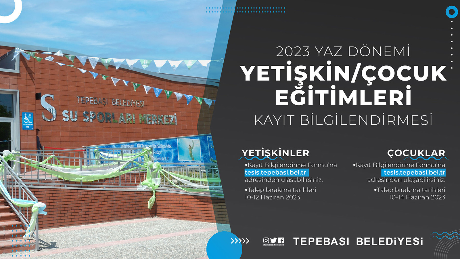 2023 Yaz Dönemi yetişkin ve çocuk eğitimleri için ön kayıtlar başlıyor. Kayıt talepleri https://tesis.tepebasi.bel.tr üzerinden 10 Haziran Cumartesi günü alınmaya başlayacak. Yetişkinler için 12 Haziran, çocuklar için ise 14 Haziran’a kadar devam edecek kayıt taleplerinin ardından başlayacak eğitimlerden 5-18 yaş arası çocuklar ve 19 yaş üzeri yetişkinler yararlanabilecek.