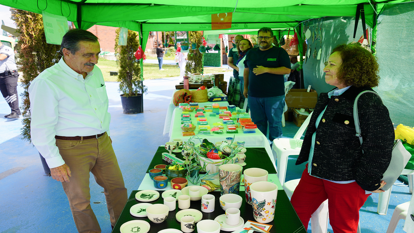 Tepebaşı Belediyesi’nin bu yıl 17. kez düzenlediği Uluslararası Eskişehir Pişmiş Toprak Sempozyumu gerçekleştirilen birçok etkinlik ile doludizgin devam ederken, alanda stant açan yerel üreticiler de yoğun ilgi görüyor. Tepebaşı Belediye Başkanı Dt. Ahmet Ataç da stantları ziyaret ederek yerel üreticilerin ürünlerini inceledi.