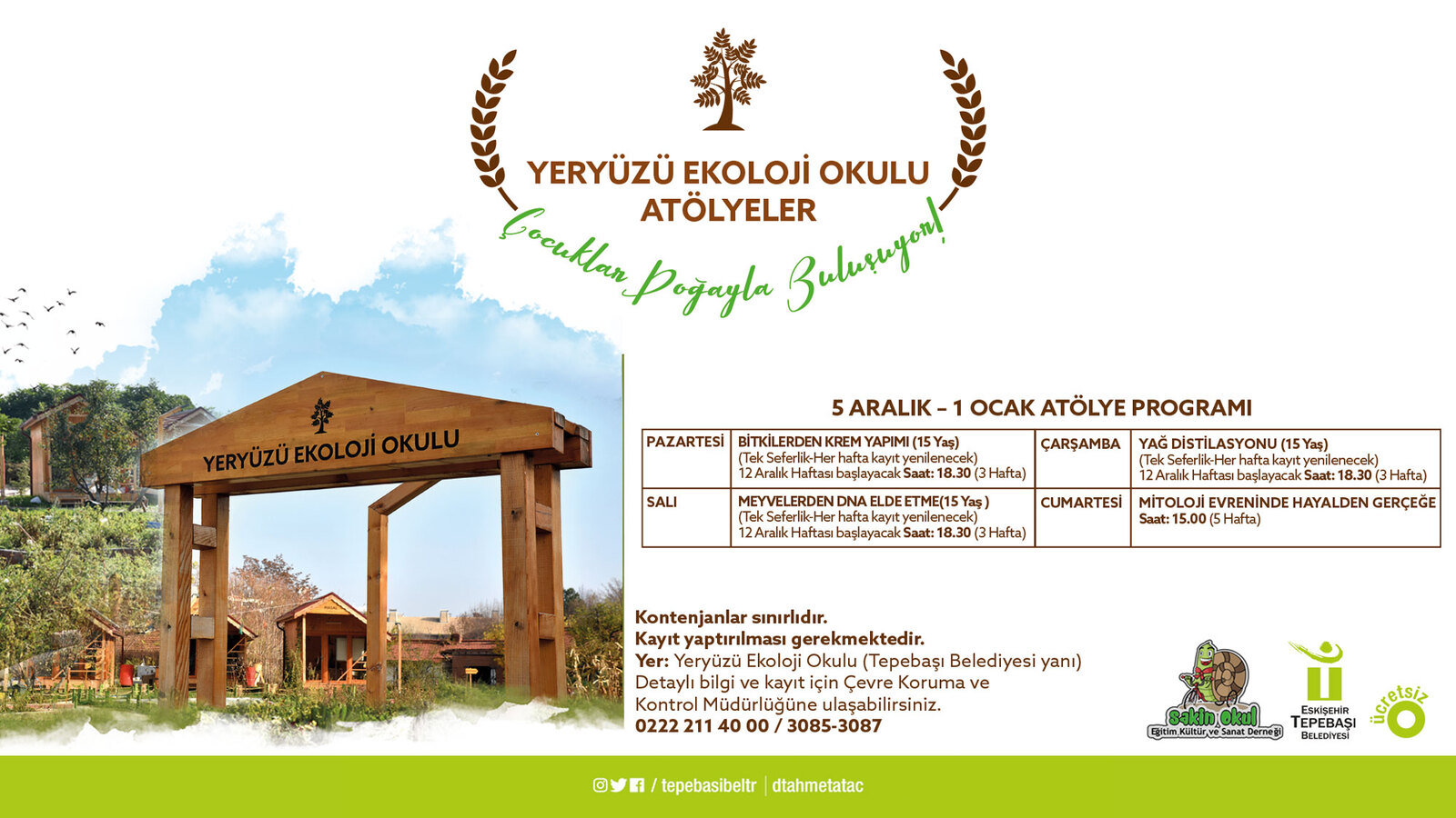 Tepebaşı Belediyesi ile Sakin Okul Eğitim Kültür ve Sanat Derneği iş birliğinde hayata geçirilen Yeryüzü Ekoloji Okulu’nda ücretsiz olarak gerçekleştirilen atölye çalışmaları kapsamında Aralık ayı programı başlıyor.