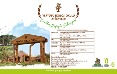 Yeryüzü Ekoloji Okulu’nda 6-31 Mayıs tarihleri arasında gerçekleşecek atölye çalışmaları arasında; Çönge kağıt geri dönüşüm atölyesi 1 (8-12 yaş), bitkilerden krem yapımı atölyesi (18 yaş ve üstü), solucan besleme atölyesi (6-8 yaş), meyvelerden DNA elde edimi atölyesi (8-10 yaş), oryantring atölyesi (6-8 yaş), Çönge kağıt geri dönüşüm atölyesi 2 (8-12 yaş) ve gizemli düşler atölyesi (6-10 yaş) yer alıyor.