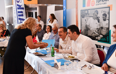 Etkinlikte bir konuşma yapan Tepebaşı Belediye Başkanı Dt. Ahmet Ataç: “2001 yılından itibaren açtığımız belde evlerimiz bu sene 24’üncü yılını doldurdu. Her yıl binlerce kadınımıza ve çocuğumuza hizmet veren belde evlerimiz, Türkiye’ye bir marka olarak yansıdı. Biz kadınımızı daha üretken hale getirmek için böyle bir proje geliştirdik ve ilgi gördü. Çünkü insanlara bilgiyi vermek veya bir sanata alıştırmak insanın vizyonunu geliştiriyor. Bu projeyi birçok belediye örnek aldı. Aynı yıl 2001 yılında Uluslararası Eskişehir Pişmiş Toprak Sempozyumumuz da başladı. Bu sempozyumumuz içine de pişmiş kapta yemek yarışması düşündük ve bugün 17’ncisi devam etmekte. Bugün burada emek veren 92 kadınımıza teşekkür ediyorum.” ifadelerini kullandı.