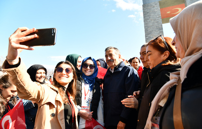 Şehitler Abidesi’nin önünde Eskişehirlilere hitap eden Tepebaşı Belediye Başkanı Dt. Ahmet Ataç, “Kutsal topraklara hoş geldiniz. Bugün ilk defa gelenler için söylüyorum, belki dünyada eşi olmayan kutsal topraklardayız. Buradaki destan öyle böyle vazgeçilecek veya umursanmayacak bir destan değildir. Atatürk, dünyanın en önemli liderlerinden bir tanesi. Burada yaklaşık 250 bin kişi şehit oldu. 2 kurşunun birbirine vurması 600 milyonda bir ihtimal. Burada binlerce birbirini vurmuş kurşun var. Yani düşünün, nasıl bir savaş, nasıl kazanılmış bir savaş? Işıklar içinde yatsınlar, böyle bir destan ile ülkemiz kurtuldu. Bir yazarın da dediği gibi, Çanakkale Zaferi, Kurtuluş Savaşı’nın önsözüdür. Orada da yine Mustafa Kemal Atatürk ve arkadaşları bu vatanı kurtardılar. Onlara ne kadar dua etsek azdır, yolumuz Mustafa Kemal Atatürk’ün yolu olsun” şeklinde konuştu.